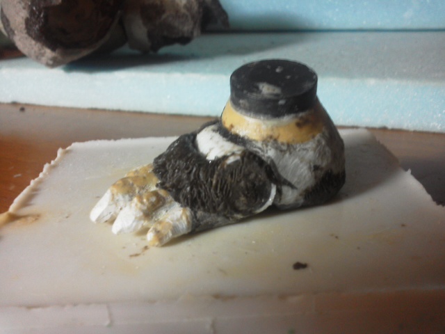 現在、大改修肉付け完了、あとは体毛表現そこそこやったら日曜日には公開できるでしょう。 ようやく思い描いていたゴリラに近づいてきています! 18日18:30追記「ありゃりゃ」の締めは「ありゃりゃ」 「千年ゴリラ」が「ありゃりゃ」ではない。 PCつけたまま昼飯たべて戻ると・・・ 勝手にウィンドゥズがアップロード!?「ありゃりゃ???」 よぉわからん上にブログ画面がなんか変?壁紙が無くなり白背景の まるでスマホ画面???最初だけでしたけど???なんでしょねぇ??? ネットのお気に入りがどっか消えちゃうし、実に使いにくい。 息子に聞くと、同様に先日ウィンドゥズ10?にアップロードされたとか。 ったくぅ・・・ちょくちょく基本ソフト変えられるとなぁ・・・ なんだか腹たつなぁ・・・私のようなデジタル苦手爺には迷惑な話だ。 オマエはウィンドゥズ10?ウィルスかっ!!!!! まぁ、画像編集機能がちょい良くなって下手携帯画像が修正できるようになったでので 許そう・・・ほら、先日の画像ちょっとだけマシに? 本日は胸のボリュームUPと首取付け部微調整。 17日21:00追記 顔と頭部の毛 1回のマジスカ盛り付け&モールディングは1㎠がやっとこさ。 横と前の体毛のラインあわせも簡単ではない・・・。 PCで拡大してもマジスカのモールディングが見えずらい。再び筆ペンで陰部にチョンチョン。 筆で軽く撫でてやる。かろうじて確認。 顔が大きくならないよう気を付けながら少しずつ進行。 今日は首の取付け位置まで改修した。 16日23:40追記 首から上の改修 「千年ゴリラ」の改修は順調。 顔は微妙なデッサンの狂いを面取りから屋い直した。 上下の口元もかなり削った。 おでこから頭頂部、そして後頭部から首に繋がるラインさらに首パーツのラインと胴体の首取り付け部のラインはかなり改善(^^♪ しばし可動機構を考慮しながら彫刻的作業に集中して楽しむ♪ 今日は昼にカラオケ行っちゃったので仕上げには至らず・・・改修箇所の見直し程度。 ここは先を急がずじっくりとやっていきます。 腕や他の部位も何気に気が付いた箇所を直しています。 やはり、仮組みした際にまだまだ美しく各部ラインがつながっておらず「デク人形」。 ソフビはあくまでも美しいラインじゃないと駄目だと思う。 13日19:40追記 「千年ゴリラ」ようやく頭部デカく見える根本的原因が判明。 只今改修中。さらにマジスカ追加注文(今回はナチュアル確保) 背中の筋肉強調。喉と頭部の筋肉が繋がりました。可動も良好。 デク人形から可動彫刻ゴリラに仕上げていく予定。 現状見たら卒倒する方もおられるかもしれないので、ある程度つくりあげるまで画像公開は自粛(笑) 月曜にはUPできるかな?「今回のタイトル、ありゃりゃ・・」はそんな予感あればこそ(笑) 11日18:10 今日の改修 目の上をちょい盛り、鼻1mm程度下にずらしました(^^♪ 眉間も強調させてから様子見ながら仕上げていく予定。 後頭部は頭蓋骨にあわせ、首ラインも修正。 ※油土で盛り量と形状確認。カン着なんとか収納できるギリかな? 顔が大きく見えた筈です。首も顔になっていたんですからねぇ・・・ 顔範囲(耳と顎ライン)つまりは側面を骨格に照らして見直し。 頭蓋骨の資料がおおいに参考になったなぁ。 頭ゴロンゴロンしないように接合ラインも改修中。 エポパテ硬化までこんな画像見て遊んでいます♪ 10日18:00追記 今日は夢中でカービング 結構削りました。 傾いていたセンターラインは右脚取り付け部エポパテ改修。 改修ラインが見えてきたので明日は外でハンドグラインダー。 明日天気になぁれ(^^♪ 9日10:25追記 整理品放出第2弾のお知らせ。 本日21:00頃画像公開、これまでオリジナルソフビ共有者限定でお問合せ受付予定。 特リボタイプフィギュア、ダンボール2箱分。(一応、怪獣はあらかた全種あるようです。) 未開封品→購入当時の希望小売価格。(初期の特リボはお安かったんですよん!) 開封品(ほぼ確認しただけ)→購入当時の希望小売価格以下+送料。 ヤフオク同様、転売でお小遣い稼ぎもOK!リボ球ジョイントは部品取りにも重宝(^^♪ 興味ある方は是非玩楽多整理にご協力ください♪ 9日17:30追記 顔と云うより・・・ 首ですね。胴体はやはりボリューム不足。早速、改修。 19:40追記 原型とことんチェック!(←遊んでいるだけ?) これも請負の納品とかあるとできない(多分そんな余裕ないしっ) 「あれぇ~~???」ポリポリ・・・ 流石に原型はモロい・・・迂闊に遊びすぎると損壊しちゃうのでこのあたりで我慢。 ソフビになったら遠慮なくグリグリしちゃいます! 改修箇所も見えたので、もう少しやってみますかね♪ ・右足取り付け部、股座の調整→胴体の垂直線の傾き修正。 ・胴体の側面と背面のボリュームUP。 ・首・肩ラインのボリュームUP ・頭頂部毛の逆立ち部隙間削りと形状。 ・腹筋部 「千年ゴリラ」制作奮闘記「ありゃりゃ・・」 「ありゃりゃ・・・」適当に余りスプレー吹いたら・・・こりゃ酷い(苦笑) 流石に陸自カラーをゴリラに吹いては無理