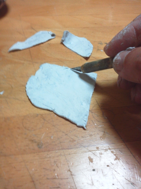 やはり、オリジナルはクレイに直接ヘラでモールドを入れていったと推測。あまり多種の道具はつかっていないようだ。とにかく、トレースに努める。