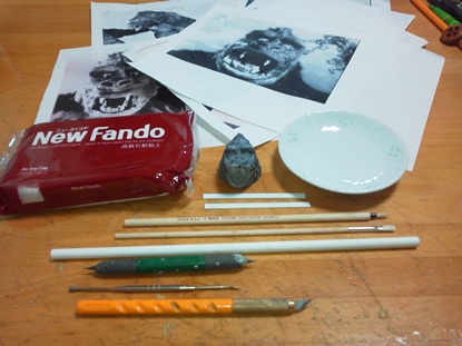今日は1日で上半身差し込み部、顔の細部及び下あご。 明日には全身仮組でバランス確認予定。 ・・・それにしても、大規模改修により大変身。 これなら「レプリカ」としていけるでしょう♪ ナマズ君は・・・各地電離層データーからは、大暴れに繋がるデータは確認できなかった・・・ でも何かが??全く根拠なし。しいて言えば「嫌な感じ」 3日13時13分頃 奄美大島近海 M5.0 1日12時40分頃 カムチャツカ半島付近 M6.3では無い。 頭を少し大きく改修。 準備:三角棒はやめた。厚さ1mmの平棒にした。そして、材料は「ファンド」 こんな感じで右にあるプラパイプで平たくのばす。コレ陶芸では「平板づくり」と云う技法です。 途中で、ひっくり返してやらないとくっついちゃいますので注意です。 乾燥遅延効果&ノリ代わりに軽く水を塗ってやりました。 顔にタオルかぶせられたみたい(笑)一度に頭全部は無理!おでこから上唇くらいまでが丁度良さそう♪途中画像も撮るので欲張らない方がイイですね。 中央あたりから、筆を軽くつつくようにして馴染ませていく感じ?空気がたまると駄目っ!外側に放射状に空気を逃がしながら自然に馴染ませる。鼻の孔はニードルで穴をあけて空気を逃がす♪水はつかいません。 あとは、資料見ながら細部をヘラやニードルで楽しくランランラン♪ なんだ、結局作り直しじゃんっ! そうなんですけどね(苦笑) でも、所要時間はおよそ15分程度。普通に作り直しをすればこんな程度じゃぁすまない。 オマケに形状は無関心。ほぼディテールだけに集中できるから早いし楽しい。 多分、前のよりオリジナルをトレースできたと思います。 以上「顔を少し大きく改修」 ファンドならではの裏技。現在はこんなことする人はいないでしょう。ってか、普通はそんな必要ないですし。今回は製作初期にジオマトゴリラよりもっとカッコ良いKongの欲が膨らみ過ぎて、カッコ良すぎる「ヒーローゴリラ」=イメージモデルになってしまっていた。 フェイスブックで海外ファンのアドバイスとともに、そのことに気づくことができたんですね。 コミュニケーションが無ければ、良いモノや新しいものを創造することはできない! ・・・・もっとも、これを仕事として食べていかなければならないとなれば、こんな大規模な改修はやりたくてもできない。 気前よく「報酬は1本乗せますっ!」なんて有り得ない。 1ケタ違う「1本でなんとかお願いします」が現状なんです。「そりゃ、無理でしょっ!!!」 「愛」とか「技術」と云うより、「条件」ばかりが厳しくなれば、簡単には良いものを創りだすなんて、なかなかできることではありませんです。 それにしても、1日ごとに前日とはまるで別モノ(笑)何やってるんでしょね。 「だって、オリジナルと違ってるトコ、みつかっちゃうんだもの!(爆沈)」 PR | カレンダー