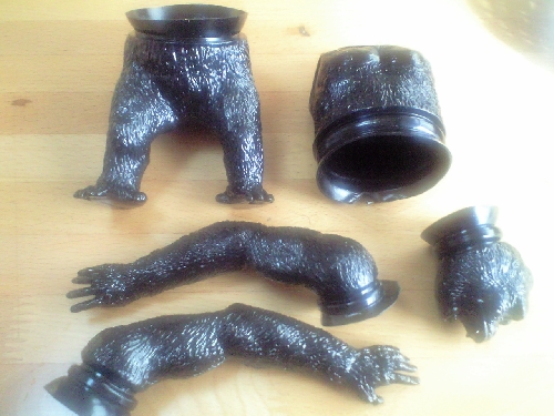 金型撤収記念オリジナルソフビ感謝共有受付ます。 ①ダークブルー「ゴリラ4」¥6500(10~15セット) ③「茶色いぐあな硬質」¥7000(5セット) ④「1985ゴリラ」¥4000 終了・在庫無し ⑤「1985ゴリラ」組み立て塗装済み¥9000 終了・在庫無し ※カテゴリーのオリジナルソフビ共有案内ご確認・ご了承がお約束♪ また、来年の新規受付の継続については「鎖国政策?」含め検討中。 こちらの共有受付は12月12日に締め切らせて頂きます。 ※金型撤収に伴い手持ち在庫国内共有分はこれで全てです。 T-REXソフビWAX原型製作専念。 左右同じようではつまらんです。左手はアッパー! 右手はレディーを掴むよう改修。 現在金型屋さんとの検討、原型発送見積もりまでいけるか・・・。 WAX原型納品後は春まで冬眠予定?来年も無事「T-REXの春」を迎えたいなぁ。 2014夏オリジナルソフビ共有掲示版② 濃紺いぐあな ¥7000 茶色いぐあな ¥7000 濃紺ゴリラ4 ¥6500 1985ゴリラ ¥4000 1985ゴリラ塗装済み完成品 ¥9000 ※次回より共有費変更予定。(登録者の皆さんは据え置き) スンマセン・・・新規受付は何かと気をつかいますんで徐々に鎖国外交。 次はT-REXの春ですね♪ カキコにて共有希望される方は、以下の前回2014夏オリジナルソフビ共有掲示版を再度ご確認ください。 以後の御連絡等は随時以下の掲示板又はメールにてお知らせ致します。 また、今回発掘されました私の「組み立て済み彩色テスト版1985ゴリラ] 〈竹〉と〈松〉の中間レベルの塗装仕様。画像参照。 ※塗装した完成品が「まんだ〇け」さんの未組立転売品よりお安いのも悲しいので価格変更。 2014夏共有受付掲示板② ①ドドンゴ G4(1)濃紺いぐあな(1)G3(1)発送完了。入金完了♪ ②肉食 濃紺ゴリラ4(1)受付完了。定形外400円。発送完了。入金完了♪ ーーーーーーーーーーーーーーーーーーーーーーーーーーーーーーーーー 8月1日 19:50追記 あらかたお届け完了できたかな? やはり、なにかとドジあります。 ご確認宜しくです。 31日13:30追記 発送完了のお知らせ。 お待たせいたしました、全ての発送手続完了♪定形外の方はブッカ保障で事故対応。 こちらも、ご希望品無事お届けまで完全保障。 尚、必ずドジあります。その場合も完全保障。何卒笑ってご容赦頂きメールにてお知らせくださi/ はこBOON・EMSの方は発送状況をリストでお知らせ。 追跡番号お知らせご希望の場合はメールください。 16:50追記 お知らせ 発送準備完了。 明日31日全て発送完了予定。 今日は疲れたのでこれにてゴメンナサイ。 ・・・体力が、ガタ落ちしてます。。。 7月30日14:05追記 発送準備開始順次発送手続となります。 以後、各自リストにてご確認頂き???あればお知らせください。 発送準備開始の為、明日29日にて受付終了。 スンマセン・・・基本、めんどくさがり屋なんです。 そして今回はリハビリ兼ねてなので無理しない「良い加減」にて失礼。 オリジナルソフビ「ゴリラ4」並びに「いぐあな」共有有難うございました!! 2014夏オリジナルソフビ共有掲示版 申し込み順にお取り置き確保。在庫なくなり次第終了。 8月初旬~発送開始予定。キャンセル可。 ・このページのコメント欄に「新規共有希望・追加共有希望」をカキコ。 ※必ずハンドルネームにてお願い致します。(個人情報保護の為。) カキコの後 申し込み順に受け付け。 この頁の共有者リストにて各自で受付を確認してください。 又は 専用アドレスまでご連絡ください。bukka@k2.dion.ne.jp 新規の方はメールにて詳細ご連絡・確認後、共有登録完了となります。 ・あらかじめ、カテゴリーオリジナルソフビ共有案内過去記事にて、本品の目的・趣旨・制約等、十分ご確認の上カキコください。個人の趣味製造品につき転売不可。 (お届け後は共有者各自の判断と責任で!) ・お届け完了までは、この頁追記予定のリストにて各自ご確認ください。 (道楽につき安心の先発送) 共有オリジナルソフビ〈非売品扱い〉 ①濃紺硬質ゴリラ4(全高およそ20cm・27パーツ) ¥6500 ※リスト内G(個数)で表記。在庫およそ30セット 次回共有より¥7000予定。 (追加製造あればのお話です) ※完成品画像はBOSSさんです♪ビルや手錠は付いていません(笑) ②茶色やや軟質いぐあな(ビリケンサイズ) ¥7000 ※リスト内BR(個数)で表記。在庫10セット ※聖氏「タイムマシン」提供画像。ペーパークラフトの灯台はつきません(笑) 3枚目完成品画像はUSA友人ブルース氏による♪ ③1985ゴリラ茶色やや軟質 ¥4000 旧ウルトラ怪獣シリーズサイズ。パーツ数5 ※リスト内G3(個数)で表記。在庫10セット 2014夏の共有②追記 3体の「1985ゴリラ塗装済み完成品」(成形色は黒) 仕様は〈竹〉と〈松〉の中間レベル。 先日発掘されました(笑) 共有希望者お問い合わせあれば、画像追記致します。 ¥7000程度となる予定。 コスト削減の現在では考えられない趣味製造ならではの贅沢ソフビ。 ※個人の気紛れ、都合による受付終了も有ります。次回共有未定。現在追加製造発注予定無し。 ※取扱い金融機関は、ゆうちょ・りそな。 ※発送