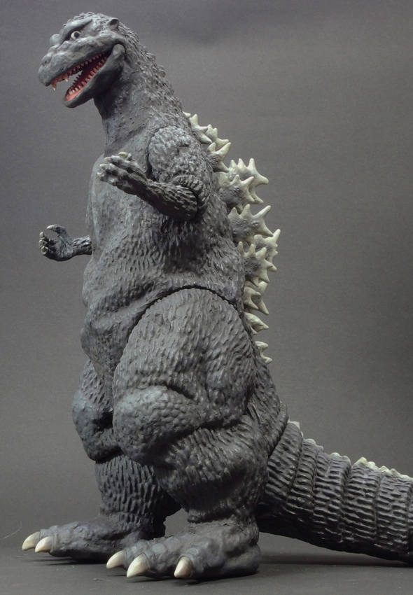BOSSさんのコメントにあるみたいに両立できていれば良いのですけど・・・特に初代ゴジラは手足も一体で造られた縫いぐるみなので、分割ラインが入るとどうしても気になってしまいます。その辺は確かに悩みどころでして・・・まぁ今回は(いつもですけど)その辺には目をつぶって「カタチを犠牲にしてでも可動を採った」というのが正直なところです。