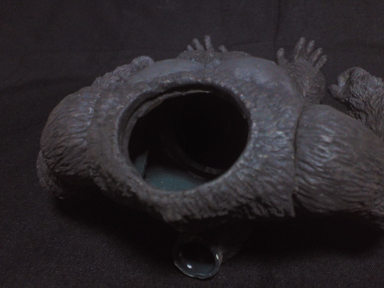ちなみにウチのゴリちゃんは、1号には上記の加工を、2号はさらに首パーツにもクサビを入れて、より大きな角度をかせいであります。