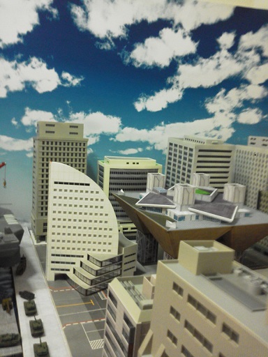 ビルばかりではなく、箱庭様の格納庫の背景などを組み合わせると、基地のような施設の雰囲気が増すのでは・・・。