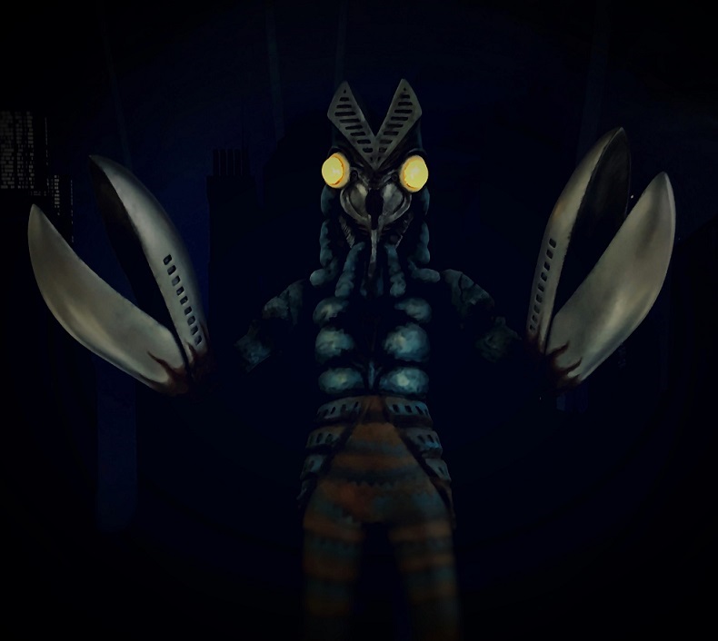 後から色調や明暗を調整してやらないと、思った絵面にならないですねぇ・・・(汗) ウルトラマンとも絡めてみましたが、劇中では空中戦が中心で 肉弾戦はなかったせいか、チョッとピンときませんでした。 遊び過ぎで、早くもバルタンの目玉の方の