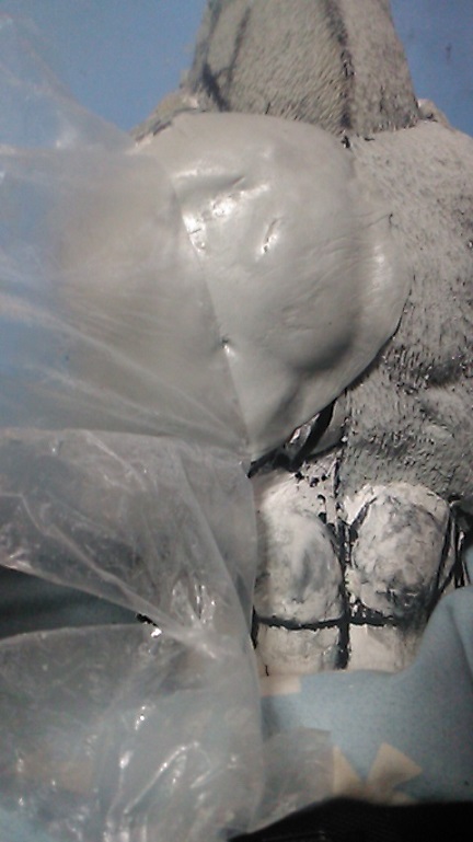 心機一転!紙粘土の上に薄皮状のマジスカ貼り付け筋肉・体毛表現開始