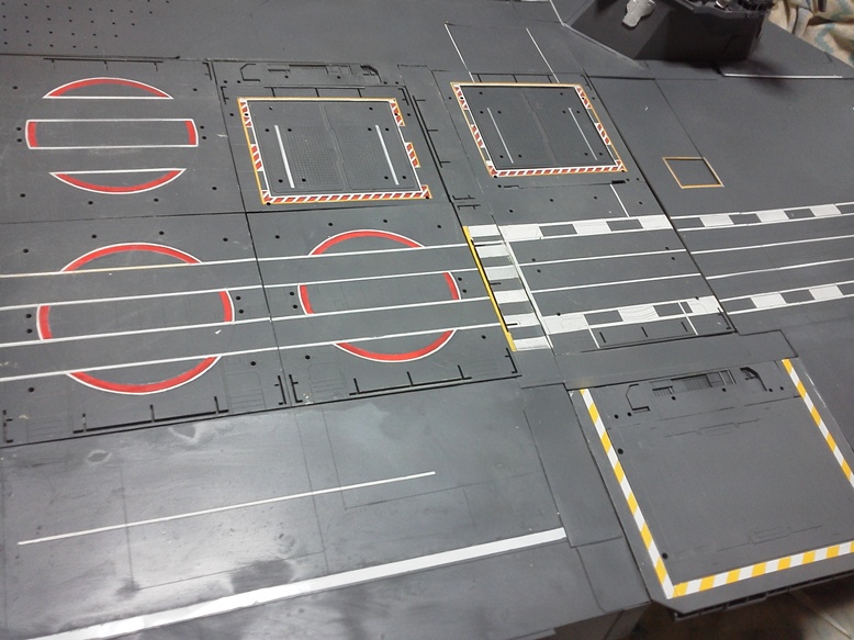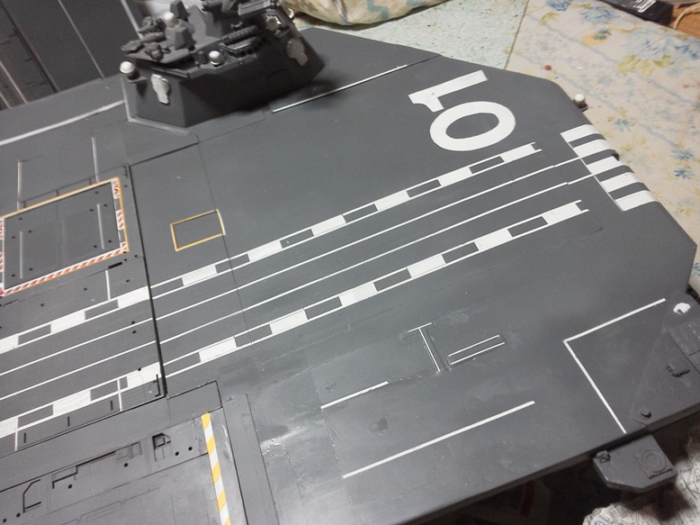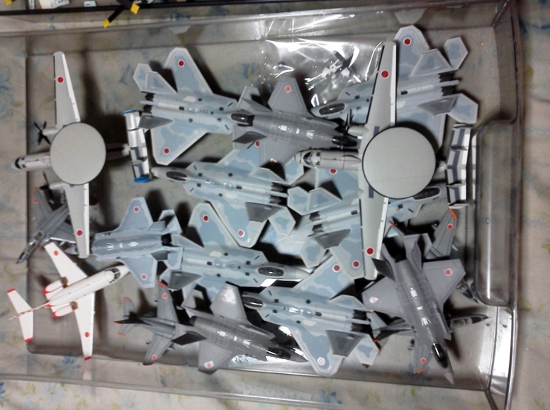3mのビニルシートが2枚必要。やはり部屋ではどぉにも写メになりませんでしたぁ。 まぁ、とりあえずここまでかなぁ。 現用機搭載仕様は少しめんどくさい。F-22は並べるのを断念。 前部VLS垂直ミサイル発射装置。 対地攻撃用ミサイルや対空、対艦、対潜ミサイルは装備していない。 ミサイル防衛に特化。イージスシステムとともに同時に複数の弾道ミサイルに対処できる。 専用の新型射撃指揮システムによりスタンダードSM5MRミサイルを同時に3つの目標に対処可能。前部だけでも同時に6つの目標を追尾、迎撃できる。 もっとも、それだけの弾道ミサイルを同時に用いるような事態が発生すること、すなわちそれは人類の自殺行為以外のなにものでもない。予備的に後部にも同様にSM5MRミサイルを装填したVLSがある。 では、対空、対艦、対潜ミサイルについては? それは、専守防衛とともに生命尊重を最重視した秘匿特殊装備が試験的に運用。 詳細は不明だが対艦防御装備は「青竜」対空防御は「白虎」対潜防御は「玄武」各種ミサイル防御は「朱雀」と命名されており、専用の発射機が装備される予定。 それらの使用については例えば一国の艦隊規模を単艦で相手にしなければならない状況であったり、通常装備では防御できないと判断される場合に限られている。 練習機も重要。何しろ「魁鷹」正規乗員は暇なのである(笑) 「魁鷹」にとっては索敵機E-2Cも補助(予備)的な運用でしかない。 それほど「魁鷹」のレーダー探知システムは天体望遠鏡並みの能力を有している。 近未来仕様では「スーパーシルフ雪風」などを並べる予定。 他に搭載予定の機動二足歩行戦闘システムについては今のところ 「HIGH-MACS」12式装甲歩行戦闘車(ガングリフォン)と ブラスト・ランナー セイバーI型(SABER type-I)(ボーダーブレイク)が最有力候補。 こちらは現用機搭載仕様でもあまり違和感がないので、何とか87式自走高射機関砲(通称ハエ叩き)や96式多目的誘導弾システム、地対艦誘導弾等の車両と一緒に甲板に配置したかったが、疲れたので本日断念。 これにメーザー殺獣車を加えるならば、まさに鉄壁の防御システム。 実際とんでも非常識な見た目ではあるが抑止効果は絶大であると思われる。 いやぁ・・・この巨大おもちゃ箱。想定していた以上に厄介。 もっと、遊びたいよぉ~~~ 4日 0:10追記 アイラさんのブログご紹介