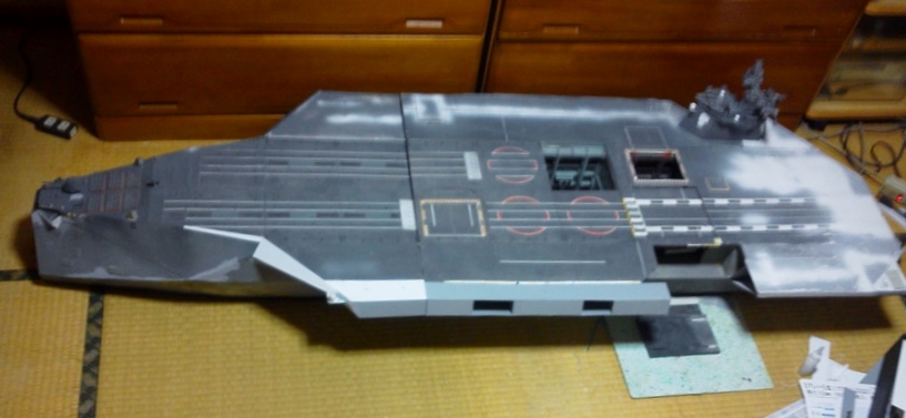 19日19:50追記 エレベーター取り付け 大型エレベーターを取り付けた。 良い感じ♪あとは型取り用ブロックをプラバンでカバーして強度と見た目を改善。 ここはもともと物資搬入口として製作。大型クレーンを設置する予定だった。内側の扉はこれ以上広げるコトができず・・・。 内側扉はシャッター半開き状態で誤魔化すしかない。 昨日、眺めていたらエレベーター可動アイデアを思いつく。 そのうち改造。まずは早く全体を形にしたい。 30日17:35追記 未発は伊予灘周辺と青森周辺部。 M5超規模の圧力が気になる地域。 それにしてもM5級の地震が毎月普通に起きる。 あきらかにそれ以上と思われるデータが確認できた場合はどうしよう・・・、 26日 21:50追記 近日中に控えている中規模M5級地震。 青森周辺部。紀伊・伊予灘周辺部。 福島沖は今後もM5級含め継続。 災害級のデータは本日までには確認できず。 その他、関東から甲信越の火山活動が活発化。 現状は慶長の大災害に極めて酷似。 22:48追記 昨日と今日の各地大気イオン 観測データから青森周辺部がM5程度の中規模。山川のデーターが気になるが解析できず。紀伊水道の動きか、はたまた沖縄沖の動きかまだ確信できず。M6以上のデータは確認できなかった。 18日17:50追記 左舷大型エレベーター 同スケールの「雪風スーパーシルフ」が楽々♪P3Cも載せられるかなぁ。 裏側はジャンクパーツで意味の無いデッチアップ。取り付け部は型取り用ブロックを使用。 あらかたの基本形状をプラバン工作。あとは大型エレベーター。 エレベーターの可動は諦めた。取り外し式で考え中。 そして、白文字やライン整えたら、甲板に航空機等を並べて遊べる♪ 細部については、その後ちまちまと追加工作で楽しむ。 一見すると右舷と左舷は同じように見えるが左右非対称。 また、左舷には車両搬入口がある。 どぉ見ても「空母」。 でも、あくまで「多目的護衛艦」。理由は簡単、「空母」のカテゴリーは無い、すべて護衛艦として保有を許されている。 極秘事項であるが「魁鷹」の装備はイージス護衛艦のそれより極めてシンプル。 垂直発射器に装備されるミサイルは対大陸弾道ミサイル迎撃用のPAC4のみ。 対艦・対空・対潜ミサイルは搭載していない。トマホークやハプーンミサイルはコストが高い。 無粋な対潜アスロックや中距離対空ミサイルも不要。 さらに他の護衛艦を従えての艦隊行動も不要。あくまで単艦で行動することを前提としている。 「専守防衛」に特化した実にのどかな護衛艦♪ 『集団的自衛権??』政府の閣議決定すら「魁鷹」には何の意味も無い。 「目には目を!」ではなく「憎まず、殺さず、許しましょう♪」が設計の基本理念。 そして、その能力が最も活かされるのが「災害・巨大怪獣の上陸阻止・救急救難派遣」。 多目的護衛艦として位置づけられた真価がいかんなく発揮されることだろう。 Let's enjoy a hobby together! | カレンダー