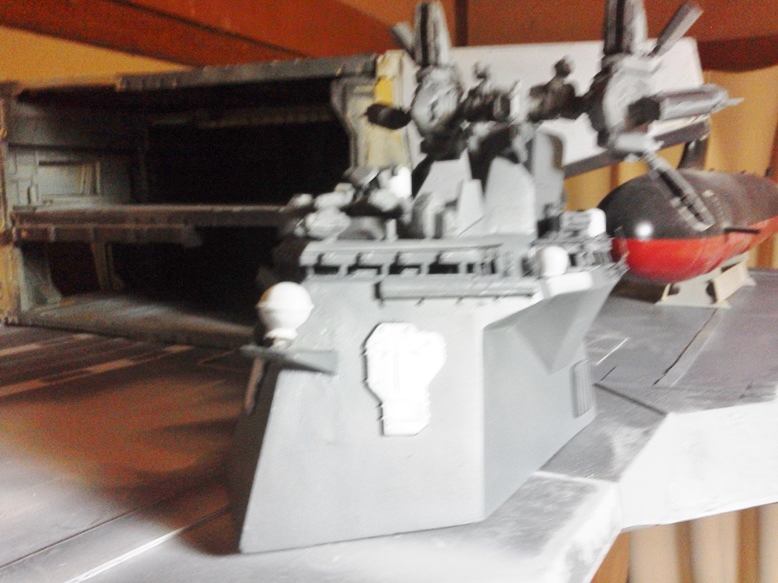 ギリギリセーフ。右舷側面にレーザーファランクスを3基設置、