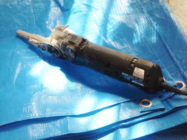 ビニルシートを敷き、一気に手持ちベルトサンダー。カミさん帰宅までおよそ35分。