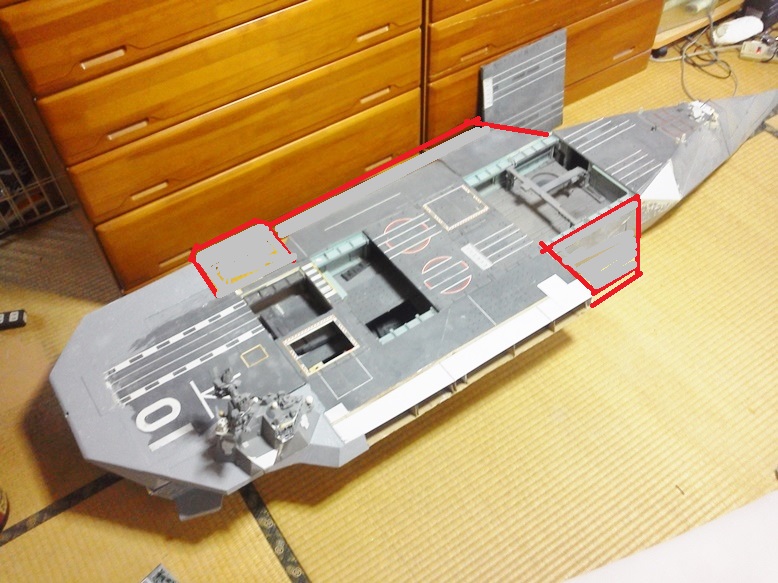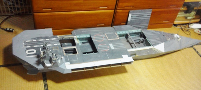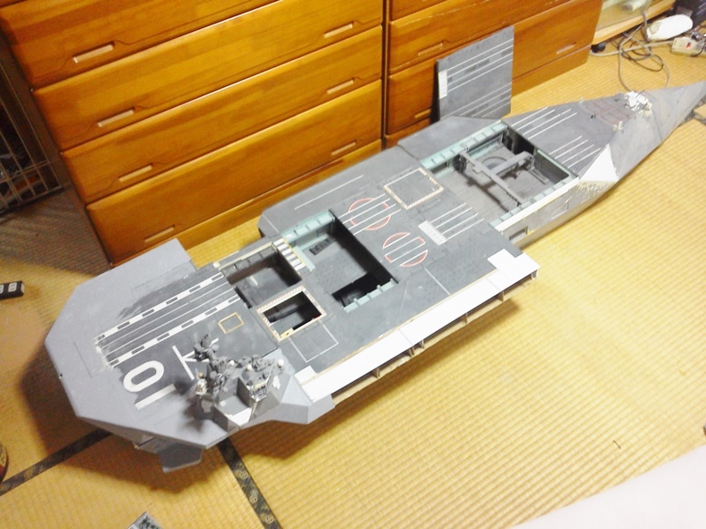 甲板拡張のバランスは良い感じ♪次は右舷を後部拡張にあわせて繋げていく予定。