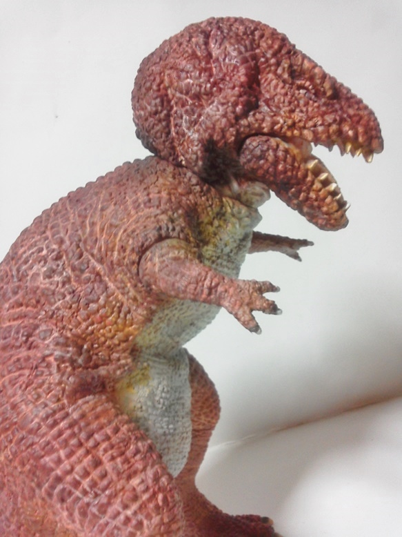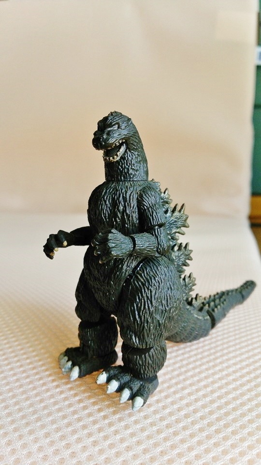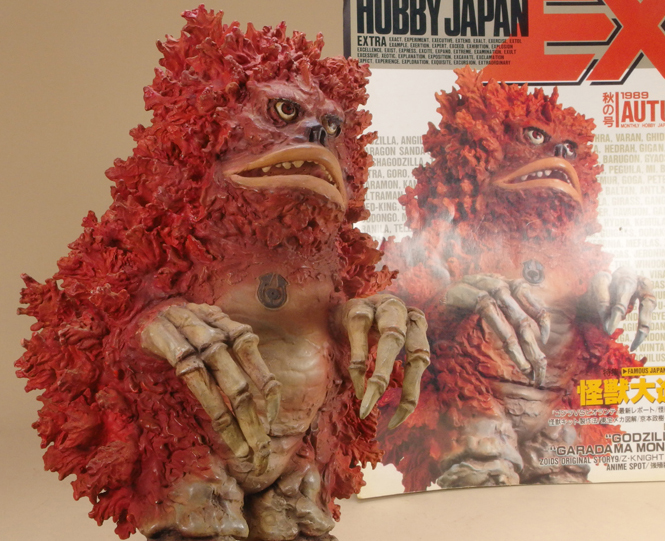 morinaoさん ガラモンの瞳拡大画像♪ テクについてはmorinaoさんコメント参照 ゴジラ2014 ネット通販予約解禁? ネット通販予約がポチポチと出始めている。 酒井氏による原型。15cmの可動インジェクション完成品、 このシリーズこそ、20cmサイズにしてくれれば嬉しかったのになぁ。 旧バンダイのウルトラ怪獣ソフビより小さい? 小さいと言われている私のオリジナルビニルキットより小さい(笑) morinaoさんから、ガラモン三態 この予告編で、どれがどれだかわかった人は凄い! 17:30追記 haseさん正解です。左がビリケンガラモン。中央がアトリエG1、右が海洋堂ガラモン。 海洋堂ガラモンは当時のHJEXの表紙を飾ったモノとのコト(現物で~~す!!) morinaoさんコメント ビリケンのガラモンを過去のソフビキットと並べてみました。 真ん中は01年に発売されたアトリエG-1の製品。軟質ソフビの外皮に真鍮製の骨格を内蔵する仕組みで、自由にポーズをつけることができます。これはブイカラーで塗装した以外は全くのストレート組み。 右は80年代にリリースされた海洋堂のソフビキットがベース。トゲを追加したほか、顔を中心に各部に手を加えてあります。今見るとちょっとお恥ずかしい出来ですが・・・実はこのガラモン、昔々某誌の表紙に載せたモノだったり。 morinao | カレンダー