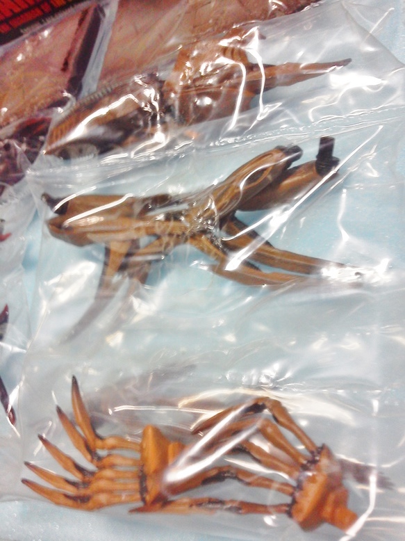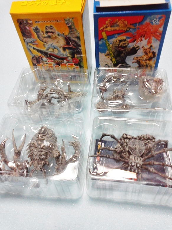 15日09:30ナガサキヤゴジラ情報追記 morinaoさん♪ ブッカ様 出遅れちゃったので今さらとも思うのですが、 当時の雑誌から紹介記事をお送りしておきます。morinao 「ゴジラ伝説」っていうんですね♪やはり、私ははじめて見ます。当時は全然知らなかった(不覚)パッケージとか商品説明とかわかりました! ゴジラはとんでもない可動食玩だったのですねぇ~。可動が増えるとコスト倍増なんです!やはり凄い。しかも¥200!!!アンガトでした!! 14日15:30追記 目標に到達 B社食玩MRS(モーションリヴァイブシリーズ仮面ライダー)他に辿りついた。 前述のワールドヒーローシリーズとほぼ同様の大きさ。でも価格はすでに¥500 食玩の薄利多売戦略は破綻。お手軽コレクションとは云えない。当然?すぐにバーゲン。ダイソーで¥100で購入したものもある。それでもパート5?まで頑張ったシリーズ。 詳細は次回。 ここで臨時の嬉しいニュース。 ナガサキヤゴジラシリーズについて、てんさんとRKOさんから情報提供♪ てんさんアンガト♪ 親分さま 色々とご配慮ありがとうございます。本来は怪獣系(リアル・レトロとも)しか コレクションしていないんですが、海洋堂のみ惹かれます。 コメでお尋ねのナガサキヤのゴジラ食玩ですがこれのことですか。画像はハイパーホビーの創刊号(この時はまだ、単発ムック扱い)に載ってます。実物も持ってましたが、彩色はなかったように思います。モスラは羽ばたきギミック、ゴジラは関節可動だったとうっすら覚えてます。ゴジラは平成ゴジラ(ビオゴジ) をモデル化し、出来は良かったと記憶しています。 てん 正直、私はナガサキヤシリーズを知りませんでした。(近所にナガサキヤがなかった) 20年以上昔のような??いなげやで食玩ゴジラ見つけてあまりの出来の良さに買い占め(笑)それが食玩のイメージを変えた最初の事件?でした。 RKOさん、アンガト! おはよーございます〓RKOです。 ナガサキヤのリアル食玩、ビオゴジとモスラの画像を送ります。 撮影が上手くないのですが参考になれば幸いです。 たしかに、ハンパないデキだなぁ・・・¥300だよなぁ・・・ ナガサキヤ情報有難うございます。 良いですね~♪多分、今では誰も相手にしないようなアイテム(笑)にも関わらずブログリアルタイムで情報交換やこうした交流を皆さんと共有できるなんて 嬉しいビニルキット共有の副産物です。好・楽・円はホビーをより楽しむことができるんですね! ネットを活用しての、これが本来のホビーの楽しみ方なのかもしれません。 そしてBOSSさん♪ 今朝、届きました♪詳細は月曜日に!嬉しいなぁ!!! ここのところ、USAぽぉる君対応で疲れていただけにホント嬉しいです。オマケにご丁寧な説明書!久しぶりの一人大笑いの大爆笑!!! ぽぉる君・・・その後65ドル入金。これでおよそ700$程度の入金合計。(笑)(笑) 私の返信は一貫して「支払完了したら知らせろ!」のみの反復対応。 あとはfb友人のタイムラインコメントある度に、事実を暴露。勿論彼の名前は出さず。非難もせず。USAのWF出荷は私の失敗だった、でも皆さん有難うを強調。 連日、fb友人からの情報、励まし、ぽぉる君の悪口メッセージが後を絶たない。 可哀相(なんて思ってないけど)に一体いつ寝てるんだろうとfbに顔を出ししていたぽぉる君は現在fbに顔もだせない。「izumiが憤慨している、悲しんでいる、何をしたんだ!?」とか「T-REX絶版?」の問い合わせ殺到で苦労しているのメッセージ。「我々はまだ友達ですか?」の泣きもはいってきている。 ならば、尚更単純「支払いを完了させて、私に知らせてください(笑)」 まずは、T-REX原型奪還!すでに発送したとのこと。 でも、どぉせ彼はリキャストするんだろうけど・・・ 彼が本当の悪であれば、いづれは自滅するだけのこと。因果応報。 14:25追記 今日も片付け奮戦中? 目的のB社食玩BOXに辿りつけない?見えているのに(笑)手前にある障害物撤去(笑)(笑) はあ・・・全然片付かない・・・なんでかなぁ??? タカラの世界の艦船シリーズ。クォリティーだけでなくシクレのミニ水中モーターが特筆!。私らの世代が子供の頃誰もが遊んだマブチの水中モーターがこんなに小型になっちゃった。でも、同シリーズにしか使えない。勿論現在バッテリー死んでる。生き返らせる方法知ってる方おられますか? かつての水中モーターはもっと巨大(笑)でも強力でどんなプラモでもお風呂で遊べた。巨大な吸盤が付属していたから♪この世界の艦船シリーズも¥300(有り得ねぇ~~~~~っ!!) こちらはコナミのシリーズ。サンダーバード、謎の円盤UFO.コクピット内の人形まで丁寧に塗り分けられている。恐るべき中国分業彩色の極致! 他にキャプテンスカーレット。そしてTVシリーズ「スーパーカー」「海底大戦争」がありましたがそれらはセットで以前にヤフオク処分。 すでにメーカー名すら記憶に無い日本特撮モノ。かなりクォリティーが高かった。 でも、かなり期待していた東宝マシンクロニクルはガクっと彩色クオリティーが落ちた。