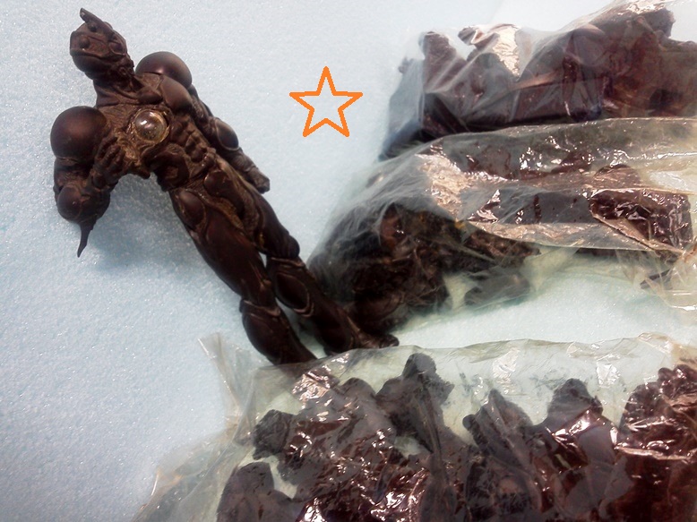 こちら、当時ソフビ用納品原型としてレジン複製を使用。MAXファクトリーの技術の結晶ともいえる㋪製造法。ギュオーは流石に大きいです。