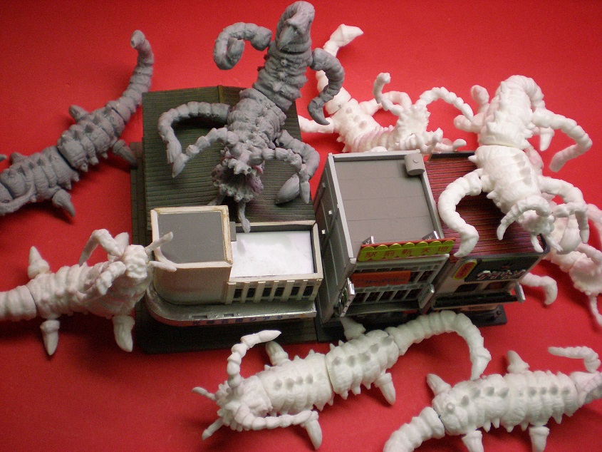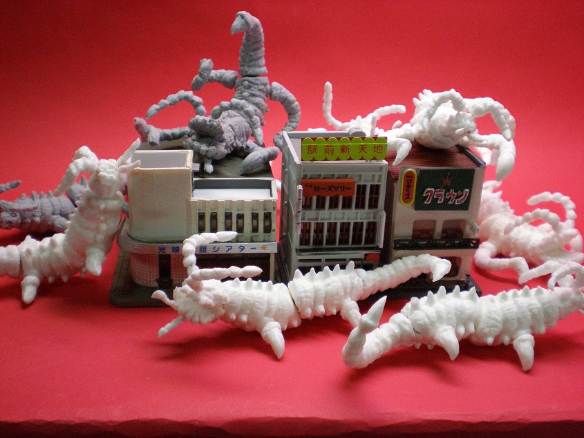 やっぱり、こうなるんです。私がNゲージ鉄道模型ストラクチャーをちまちまと蓄えていたのもコレの為(笑)これを極端にやったのが伝説となったイノウエアーツの巨大ゴジラを使ってのNATO基地襲撃。もはやスタジオ撮影のレベルでの巨大セットだった。憧れちゃうんですよね。
