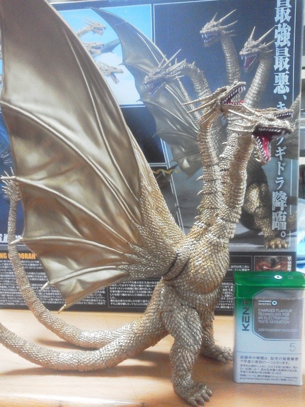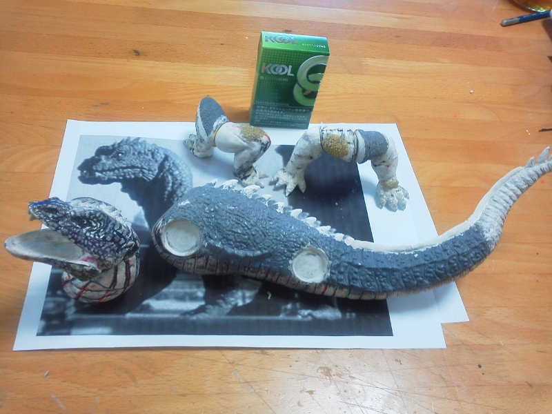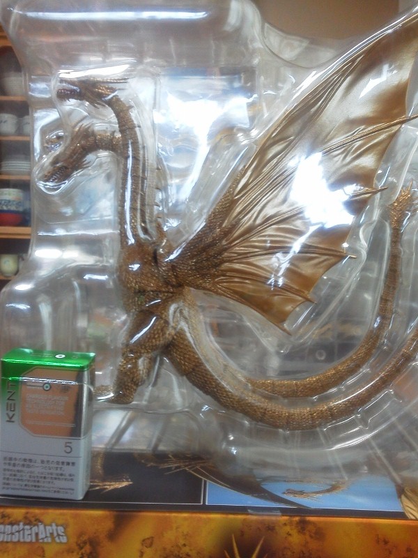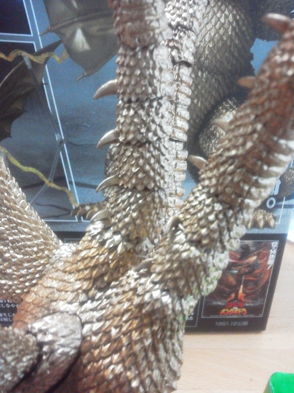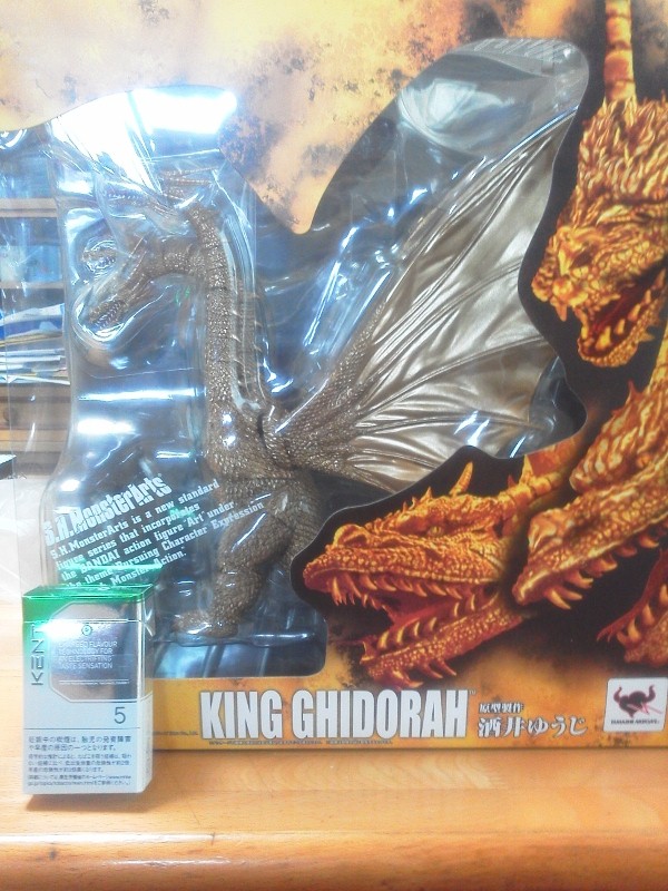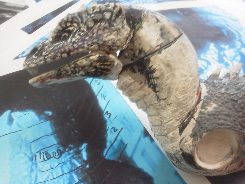 Mさんが再度教えてくれた、「リドサウルス」の造形が見られるトコです。http://chelloveck.sfblogs.net/2011/01/30/harryhausen-a-szobrasz/です。 ハリーハウゼン様の神業見たら、全身震え来ちゃいますです! 私も、検索してたら面白いトコ見つけました♪ http://www.theclubhouse1.net/museum/harryhausen.htm レイ ハリーハウゼン物の造形ばっかりのトコです。 今日の「いぐあな」 左側の首に「ファンド」で鱗を貼り付け確認。画像資料とほぼ一致。 正面からの形状も一致し、まずは峠を越えた感じで一安心♪あとは、 ウロコとかシワだとか画像資料で確認できるところから攻めていきます、 オリジナルは、まるでソフビの間着を意識したかのように、 実に都合の良いところに良い形状でシワやら鱗やらがあります。 ほとんどアレンジすることなくそのままトレースすれば、 非常に自然な間着可動が楽しめるでしょう♪ 現時点での見込みでは完全レプリカは無理でも、 7割程度のトレースはできるかと思います。 バンダイ 酒井ゆうじ原型 S.H.M.Aキングギドラ届く。