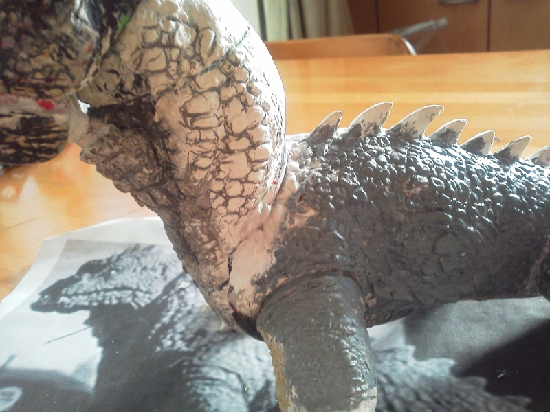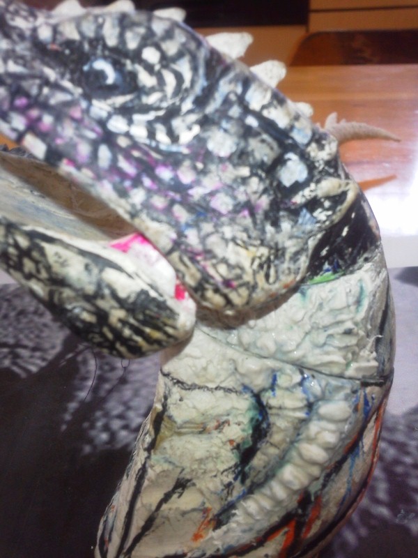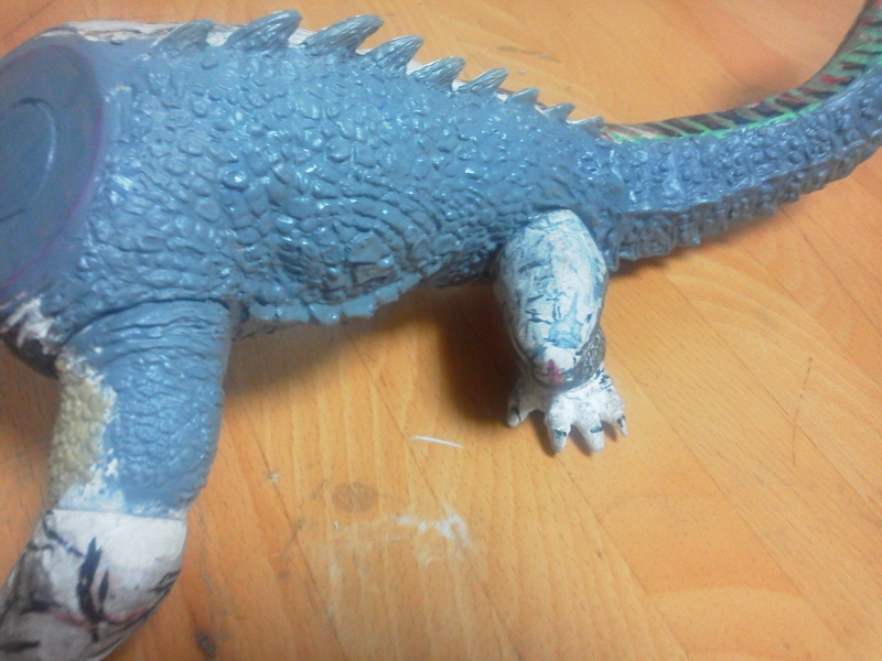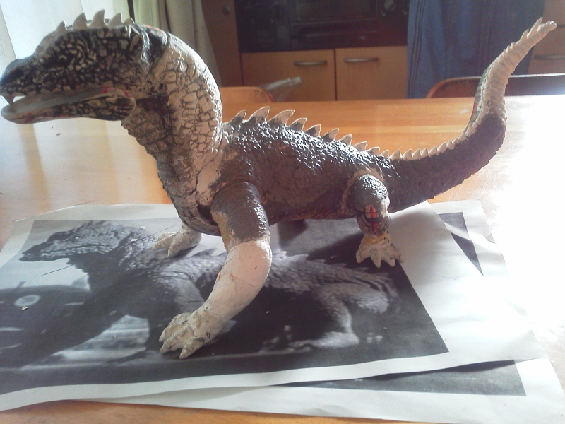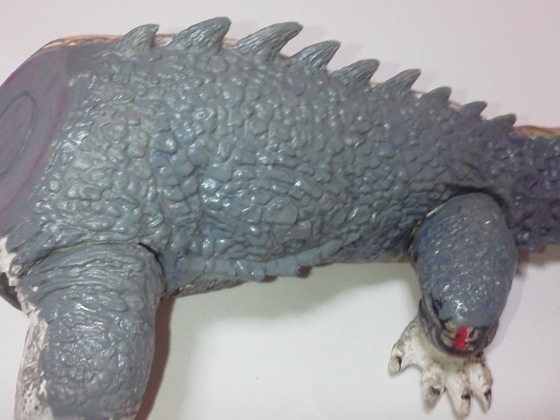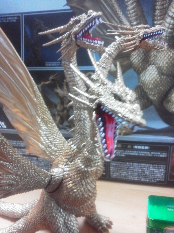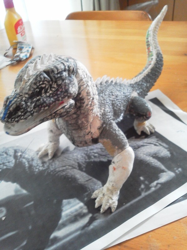 Mさんが再度教えてくれた、「リドサウルス」の造形が見られるトコです。http://chelloveck.sfblogs.net/2011/01/30/harryhausen-a-szobrasz/です。 ハリーハウゼン様の神業見たら、全身震え来ちゃいますです! 私も、検索してたら面白いトコ見つけました♪ http://www.theclubhouse1.net/museum/harryhausen.htm レイ ハリーハウゼン物の造形ばっかりのトコです。 今日の「いぐあな」 左側の首に「ファンド」で鱗を貼り付け確認。画像資料とほぼ一致。 正面からの形状も一致し、まずは峠を越えた感じで一安心♪あとは、 ウロコとかシワだとか画像資料で確認できるところから攻めていきます、 オリジナルは、まるでソフビの間着を意識したかのように、 実に都合の良いところに良い形状でシワやら鱗やらがあります。 ほとんどアレンジすることなくそのままトレースすれば、 非常に自然な間着可動が楽しめるでしょう♪ 現時点での見込みでは完全レプリカは無理でも、 7割程度のトレースはできるかと思います。 バンダイ 酒井ゆうじ原型 S.H.M.Aキングギドラ届く。