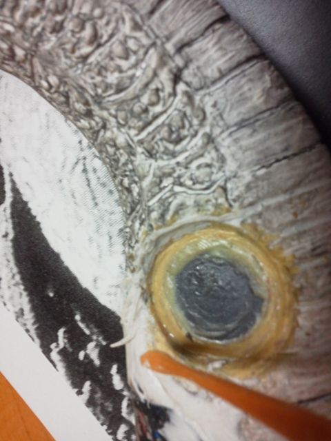 ※彫刻等で彫ったトコに空気ためないように、中央から放射線状に筆でならす。