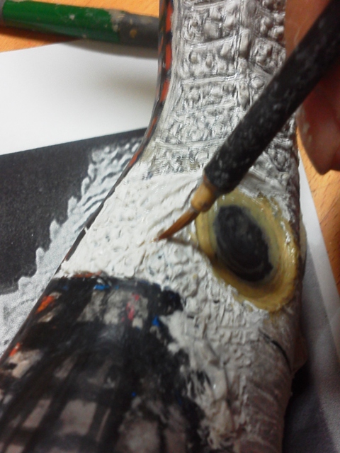 ⑥表面処理が面相筆だと時間がかかりそうな場合は、水をつけた中平筆で小さな丸を描くような感じで軽くこちょこちょやってやる。