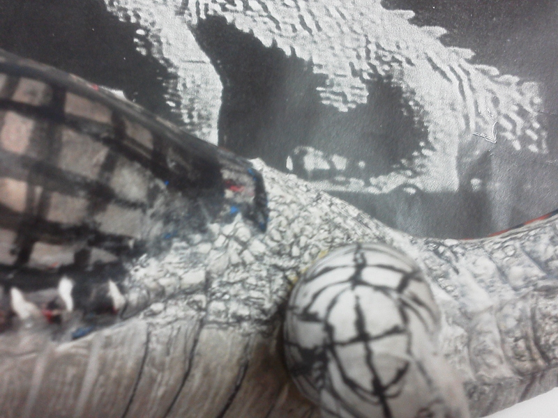 ④少量の水をつけた(舐めた)筆でまたまた描くように1個々の形をはっきりさせてやる。