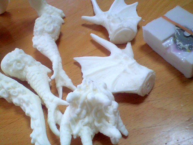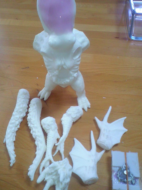 昨夜ダイレクトメールにて受注。夜のうちに流し込みをおこない、今とりだしたばかりの妖蛸クゥトゥルー「レジパッチン」領布2号♪