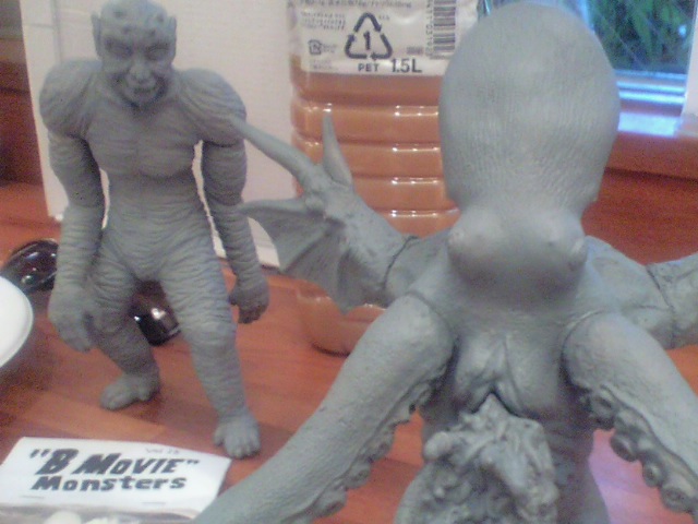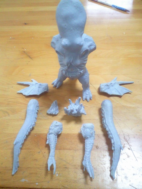 本日はダウン・・・点滴してもらったので今は大丈夫。 明日は、聖氏の「茶会に参加予定。」harleyさんも出席予定なので、這ってでも行く。 ちょっとだけ手慰み。TRY-2の腕で軽く遊んでいたのだが・・・・ タミヤエポパテとヘラがわりに鉛筆でちょいちょいとやったのがコレ。 名付けて「タコ遊び」 型取りの為、妥協した細部触手。 エポパテ丸めて鉛筆で整える。 実に気の向くまま、鉛筆先にこびりついたエポパテのカスも、まんまなすりつける♪ 「こりゃ、楽しいっ!!」なんて思うのは私だけ??? 複製の腕は、もはや素材♪頭だって、ニワトリのトサカみたいな小さなビラビラいっぱい付け足したり、トゲやツノを付け足したり♪♪腕も径だけ合わせ、作り直したり、肘から先を異様に伸ばしたり♪♪♪ どうやら「クトゥルー」は第2形態からさらに進化可能。造形がシンプルだからこそ、初心者でも簡単に楽しめるかもです! いつか、みなさん方と「myクトゥルー展覧会」やりたいですぅ!!(ぱてじんさん、聞いてますかぁ~~~) 次回更新は「茶会報告」の予定。。。。明日に備えて、本日はこれにて。 おっと、Mさんより届いた作品DVD!「良いものは良い!!!久しぶりに映像で感動しちゃいました!!」 こちらは、Mさんにご連絡、ご確認を頂いてから、じっくり特集にしたいと考えています。 その折には、皆さんも是非応援宜しくです♪ 「れじぱっちん」テスト抜きTRY-2 いやん~っ