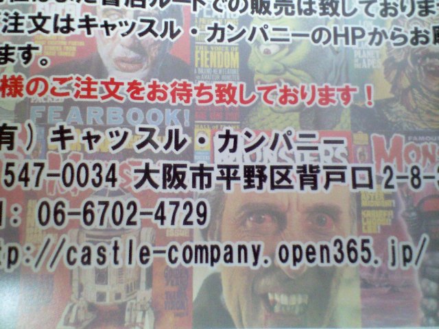 残念がって泣いているヨシヲさんに!「コレ、知ってたかぁ?」「タイムマシン」の裏表紙! プロップやらポスターやらロビーカードやら・・・コレ見たらヤバぃかもです。 序文:フォーレスト・J・アッカーマン 装丁:A4版 ソフトカバー 頁数:本文208P(約半頁カラー) 定価:3800円(税別) ISBN978-4-904244-00-5 ※書店ルートでの販売は致しておりません。 注文先:(有)キャッスルカンパニーのHP http://castle-company.open365.jp/ もし、子供の頃少年雑誌で大伴氏が、「金星竜」や「金星ガニ」など、海外B級モンスターを紹介していなかったら? もし、「季刊宇宙船」創刊時に川口氏のレジンキットや品田氏のゴジラギニョールの作り方や、森氏の人形アニメーション制作活動が紹介されていなかったら・・・・ 私は、多分普通に流される人生を「知らぬが仏」(違うか♪)していたと思う・・・・。 耕した一つの畑だけで、収穫のみに気を奪われ作物を繰り返し作り続ければ、やがて土壌は痩せ細り何も育たなくなってしまう・・・つねに、汗をかき手を汚しながら他の土地をも耕すことを忘れてはならないのだ。 収穫された作物を安く手に入れるコトだけを求めれば、安く提供されるモノしか手にはいらなくなる。 今、何よりも必要と考えているのは「創造」の耕しと、実際に汗をかき、手を汚しながら実体験すること。 そして、知るよろこび、わかったよろこび、できたよろこび、共有し発展させていくよろこび。 そんなよろこびを自ら味わってみるコト・・・それを楽しめた人は幸いであろう。 「季刊宇宙船」の原点は「同人誌」。その開拓精神がひとつの文化を大きく動かした・・・ 少なくてもこのたびの「タイムマシン」創刊は、今後を計るひとつの「ものさし」になるのではないかな? 16日追記 harleyさんから届いた「茶会」追加画像(汗) 問題なのは左のオヤジ56歳・・・・ この半年で、随分と膨れた(汗) こりゃ、ダイエットだな・・・・ この夏の最重要課題。目標-5kg以上 ・・・・まいった。 17日09:35追記 ウィキペディアより 鳥海火山帯 北海道南西海上の渡島大島から那須火山帯と平行して東北地方の日本海側を通り、新潟県南部の苗場山に至る火山群である。主な火山は北から、渡島大島、奥尻島、岩木山、鳥海山、月山、浅草岳、守門岳、燧ヶ岳、苗場山などである。