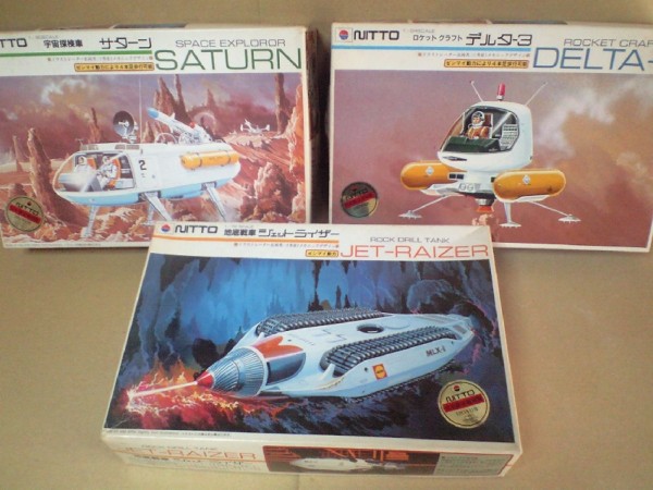 押入れ整理で、出てきました昭和レトロなプラモ 全部1980年代~1990年代の再販モノ まだ、あの頃は社会も元気!私も元気!! いつの間にか、イマイは解散・・・ニットーも消えた。 でもアオシマ君は頑張っている! 「踊る大捜査線」のように元気でいて欲しい。 思えば、初版発売・・・当時は小学生。 電動V-3号は高嶺の花で小遣では買えなかった。お誕生日かクリスマス・・・ やっぱり鉄人28号の方が好きで、ついに手にすることがなかったⅤ-3号。 ニットーの歩行シリーズ。 「サターン」は¥200だったか・・・? 小遣いもらってすぐに店まで走った。店の前のコンクリートの上で作って遊んだ。4本の足で歩行するメカは斬新で、しかもレーダーまで回転したモンだから大満足!! その後も何度か買って作って遊んだお気に入り。最後はいつも足が折れてしまってオシマイ。 友達と爆竹で吹っ飛ばしたりしてゴメンね。あとで、ちょっと後悔もしたっけ・・・