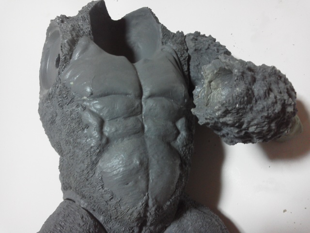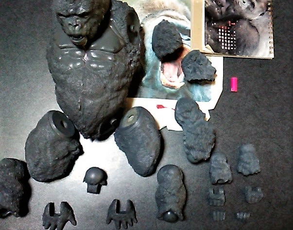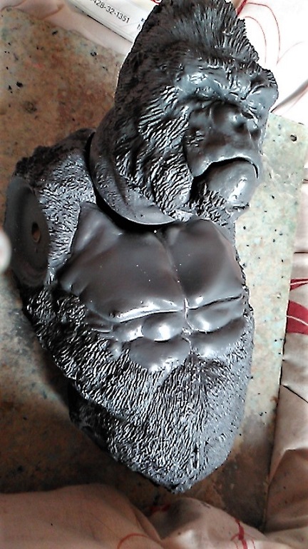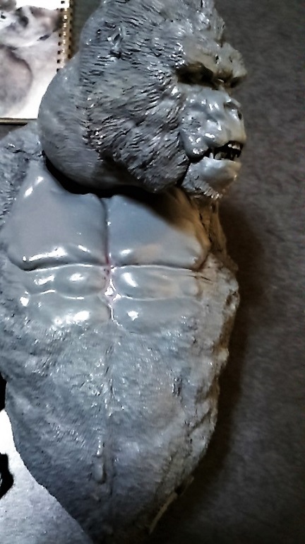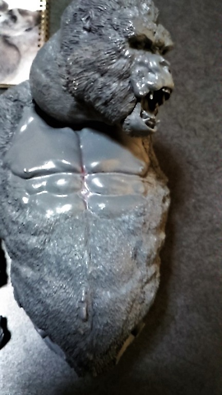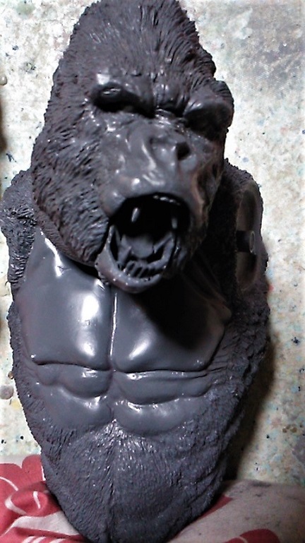 苦労して細かく彫った毛が・・・サフなんか吹いてないし・・・なんでかなぁ??? 201901/29 20:10追記 千年ゴリラ画像 なんかハゲに見えるしサフ吹き過ぎかよっ!?に見えちゃう画像気に入らず本日撮りなおし携帯から送信すも未だ受信欄に確認できず??? とにかく画像差し替え予定・・・ 初めにお詫び 持病進行による障害もありブログ更新ままならず・・・ 加えて中国組織的業者のカキコ処理中私自身のアカウントのみならず 努さんのアカウントまでカキコ拒否設定になっちゃったようです(汗) ささやかな楽しみだった皆さんとの交流ができずガックリ・・・ 本当にごめんなさい。でもkunimimiさんブログであそべますよん!♬ ほぼゾンビみたいな状態ですけど私はまだ生きています。 無理のないペースで更新していきます。 どうかご心配なさらず思い出した際にでもご一緒にホビーを楽しみましょう。 ブッカことIzumi Takabe 努さんの電動ゴジラ ブッカさん ご無沙汰しております、努です。 年も改まり、寒さ厳しき折、如何お過ごしでしょうか。 昨年の不精を反省しつつ、今年も過ぎて行きそうな気配に憤慨し、やる気を出す自分です。 さて、ここにお見せしますのは、伝説のマルザン(マルサン商店の末期名前替え社名)の大ゴジラ自己複製版です。 マルサン商店が名前を変えた末期商品にて、数が少数しか現存しておらず、オリジナルはべらぼうなプレミアムが付いております。 なので、複製品で満足しようと、自分で遊べる物を作ってみました。 表側部分は知人の協力で複製いたしましたキャスト製で、内部構造はタミヤのクランクギアやリモコンスイッチ、豆電球等を使いまして電動歩行可能な完成品として仕上げました。 多少歩きがタドタドしいのですがそれなりに前進歩行しますし、発光ギミック付きでして目と口が光ります。 顔付きを更に格好よく見せる為に、目の縁と首の後ろ側をパテで盛って整えてあります。 大きさが約30センチはありますので、マィテイコングと戦わせて「キングコング対ゴジラ」を再現しております。 ゴジラの表面処理と彩色がまだ拘ってみたいので、更に手を入れてみたいです。 努さん♪アンガト! ご無沙汰になっております。ひゃひゃひゃっ三原氏からお聞きに なった通り主治医より「余命宣告」通り過ぎて『おまえはもう死んでいる筈!なんで?』の「ゾンビ化宣告?」爆笑 通院も治療ならぬ検査データ御提供と気休めの処方箋もらいにいってるだけじゃん???挙句に献体登録までしちゃったし・・笑笑 久しぶりにパソコン開けたけど見えねぇしっ!ストレスしちゃうしで二日がかりでのんびり記事更新。 わぉ~っ!!子供の頃憧れたマルサンゴジラのお値段の高かった奴じゃぁございませんかっ!! キャストレプリカとはいえ凄い凄い!!(視力低下した目で拝見できるだけであの頃のワクワク感が蘇るぅ~~♪) ビリケンさんの「大猩猩展」(ゴリラ獣展示会)無条件でご協力させて頂きます。ついでにゴリラ4の金型いりますかぁ~差し上げますよ~♪」 流石に三原氏びっくらこいて「どぉしちゃったのよ!?」なんてご心配おかけっしちゃったり笑笑※金型といえどもカミさん的には粗大ごみですからねぇ(汗)