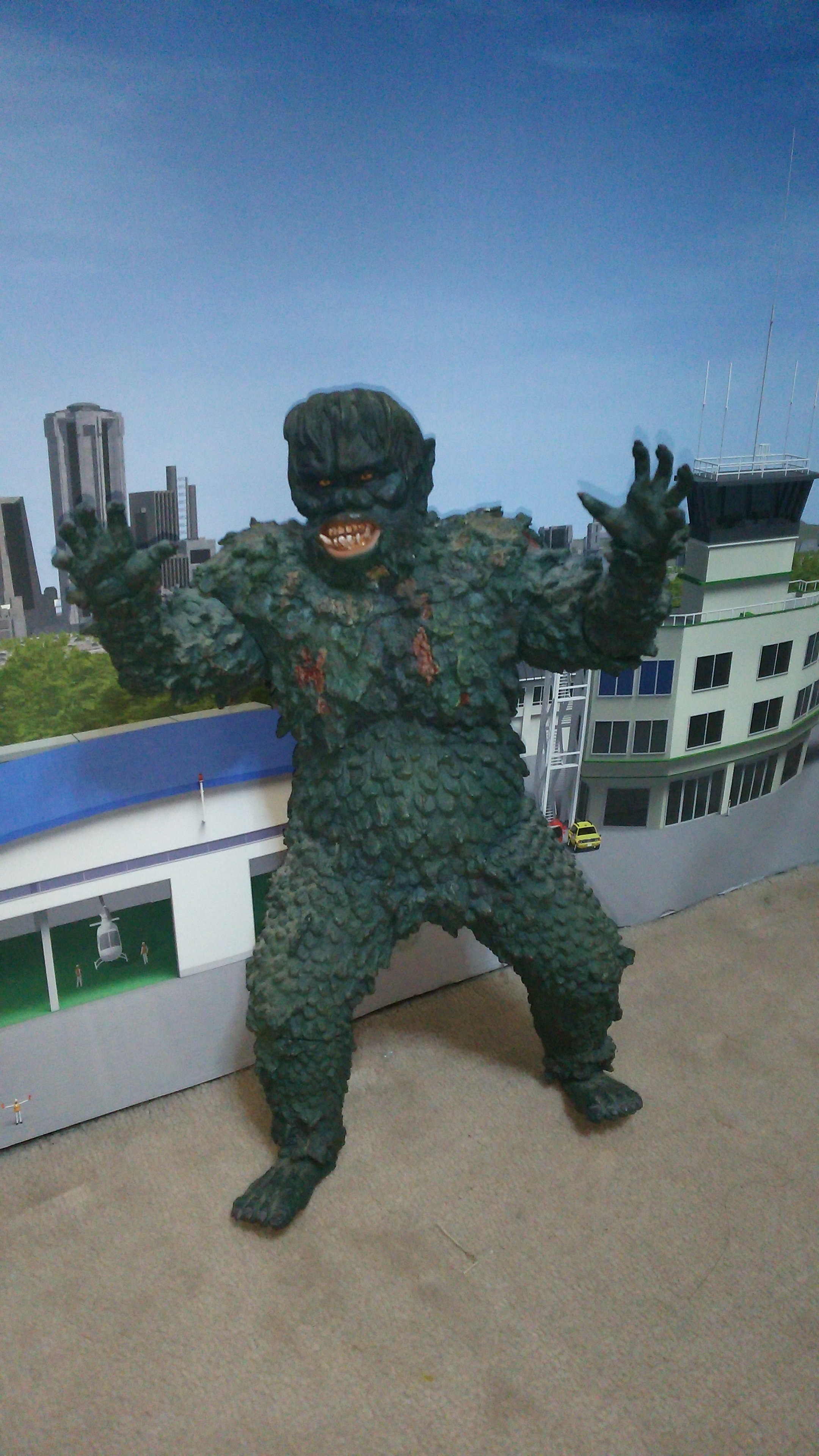 箱庭技研様コメント:マンション屋上から上半身が出たアングルでの1枚で、ゴジラの巨大感が伝わるワンショット。