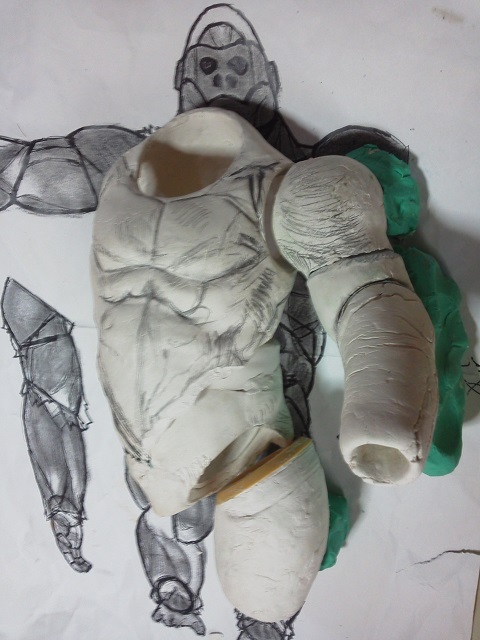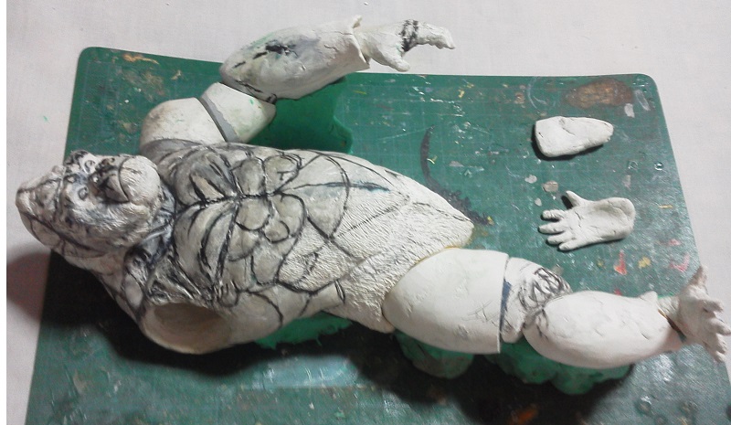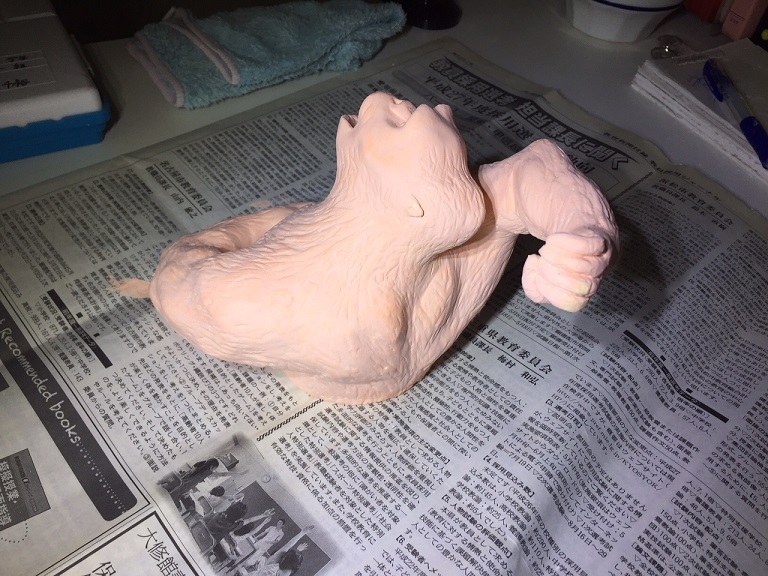 イケメンゴリラ原型制作は首の取付け位置を微妙に修正。