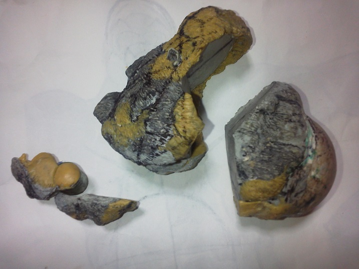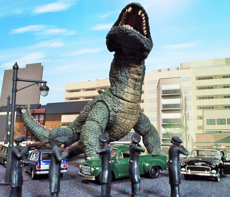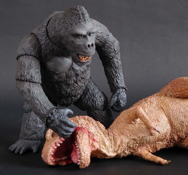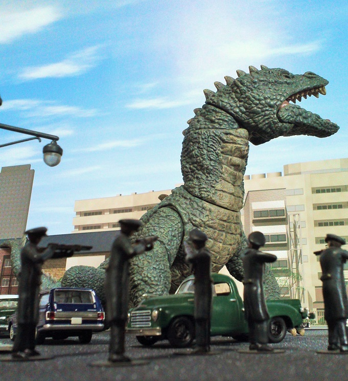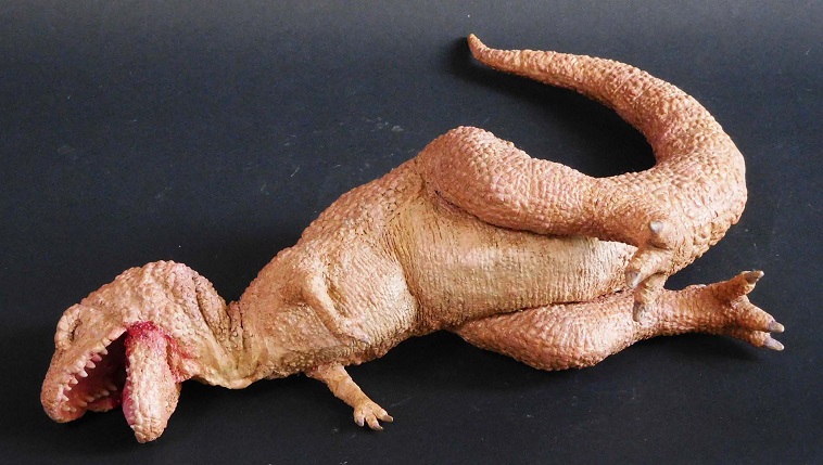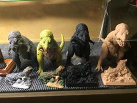 The world of Mr,morinao 「D-REX which was defeated by King」 (王に倒されたD-REX?英語勉強中) ブッカ様 御退院おめでとうございます。親びん、待ってました! さっそくですがREX2号の画像をお送りします。 2体めのREXは、以前お伝えしたとおりゴリラに倒されたところを再現してみました。 コレを半身で製作することを思いついたので、安心して表皮の一部をREX1号に流用できたわけです。 切り欠きによる欠損部はソフビのバリで埋め、表面をエポキシパテで成形。プロポーション等は1号に準じて製作。口内やカカトの蹴爪なども同様の改造を行ってあります。 ようやく全部完成したのでそろそろ特撮に取りかかろうと思っていたところ、箱庭さんから森林シート開発のニュース! これは発売を待つしかないですね。 morinao morinaoさん♪アンガト! これは、まんま映画のシーンのイメージに直結!! これだけヘロヘロがリアルに再現された暴君竜の造形はもしかしたら世界初? レジンキットではおそらく困難。ソフビでしかできないんじゃないかと。 こんな楽しみ方ができるんですねぇ~~~っ!お見事です!! 特撮が待ちきれません!! まだ起き上がって動くのがすこし辛い生活。でも鑑賞は全然大丈夫!!! 楽しみにしてますね♪ Gのイケメンゴリラの胴体の設計ではmorinaoさんの切り欠きをキットに応用♪ 繋ぎ目見えない口開閉もできましたよん。これで人参でも警官でも口に咥えるコトができます。 回転可動部の繋ぎ目を何とか表面上見えないようにさせることに工夫を凝らしています。 手首だけは、ボールジョイント「ヴァモア風」を試してみたいと考えています。 イケメンゴリラもソフビでしかできない可動と造形を模索してみますね! 「千年護罹羅」本日の制作 頭部の分割 頭部は4パーツの構成です。いぐあな→ゴリラ4→D-REXの実践と皆さんから学んだことをすべて盛り込んだらここまでできるようになりましたよん♪ ①頭部を前後で分割。期待される成果=無理抜きせず原型の形状が伸びることなくキープ。 ②下顎部を1パーツで構成。期待される成果=組みやすさ、外れない。上下キバの噛み合せ。 ③下顎押さえ部。期待される成果=下顎押さえと首部としての自然な繋がり。 尚、可動特有の接続部のラインやら隙間やらはほぼ表面上見えないように工夫した。 ・・・それにしても。 相変わらず制作途中のブツが汚ねぇなぁ・・・。 誰が見てもその辺に転がっていたら、ただの不燃ごみ(笑) 低下した視力を補うにはラインやノギス、コンパスでチェックするしか方法はない・・・。 世間体?そんなものは何の役にも立たない。楽しむだけなら歪みやデッサン力不足も味わいにできるけど、自分が満足し、他人様にも手にして頂き喜んで貰おうとするのなら最善を尽くす。 それゆえに仕事としては成り立たない(笑)自給換算したら?考えるのも野暮なお話で~す♪ 分轄はこんな感じにしてみました。 下顎の湯口は可動軸三分の一と首パーツの重なり部。可動させて口を開く際には下顎くり抜き部に首パーツの先端が内側に入り込む仕組み。顔の湯口には繋ぎ目ラインを隠す毛が一部入り込む。さらに初心者でも角度をつけたカットが確実に行えるように、ガイドを設ける予定。 結局写メのあと、下顎に取り付けた歯が気に入らなくて剥がす。明日リトライ♪ 下手な鉄砲、数打ちゃそのうち当たる!(笑)(笑) タクヤ君、これはうまそうだ!「いきなりステーキ!!」 渋谷にヤボ用があったので、行っちゃいました!!「いきなりステーキ‼︎」なかなか美味しいですよ(^^)注文してその場でカットしてくれます。八王子にもあるので、今度行きましょう!! タクヤ 君は、私がよほど「肉食系くいしんぼ」であると思っているようだね。 残念ながら「その通ぉ~~りであるっ!!」 しかしこれは・・・260gアメリカ産またはオーストリア産リブロースと見た。 サイズが微妙だなぁ・・・・カットステーキ食うならば、男は黙って1ポンド食らうべし!! よしっ!今月から積立貯金して国産和牛1ポンド食いに行こう!! イカン・・・悶々としてきた・・・ 明日は、すたみな太郎でとりあえず肉(らしきモノ?)でも食って我慢してみるか・・・(笑) 31日18:30追記 やはり大きいサイズは作りやすい♪ 中央はGEOのキングコング、右はゴリラ4 毎度苦労する口腔内の制作。今回は大きい分見える、つくれる♪ 下顎押さえとと首に繋がるパーツのあわせ部仕上げ中。上下キバも頭頂骨画像の通り噛み合せを再現、口全開時どこまで画像の再現ができるかが勝負ドコロ。 今回はぱッと見、口を閉じた際は口が開閉するなんて多分わからない。 それこそがソフビならでは♪インジェクション量産品でやれるモンならやってちょ(笑) ・・・おとといからめまいが頻繁。 変な耳鳴り・・・音はD、リズムは不規則で雀がチュンチュン、音色はカミキリムシ?の如し。 「しばらく様子をみてみましょう」との主治医の談。先日は危うくクラっときて階段で転落しそうに・・・。まだヨレヨレヨイヨイ爺さんにはちと早い