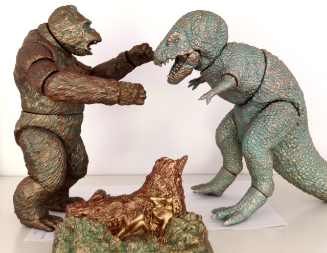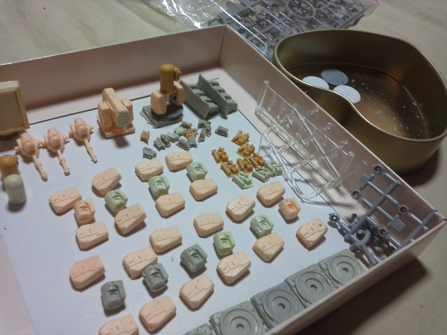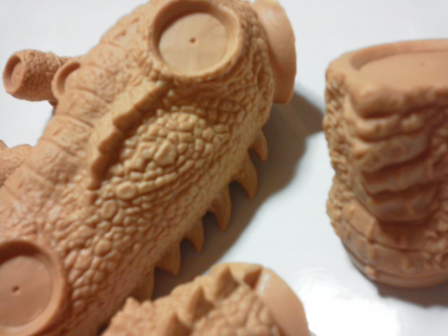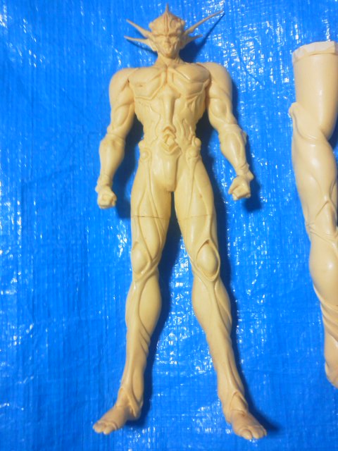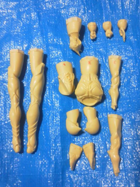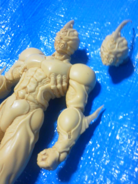 90sのマックスファクトリーのものつくりは工芸品。 これは私の宝物です。 これらはソフビキットにする為の原型レプリカ(一次原型)なんです。 とうじは企業秘密?あはは、他のメーカーはそこまでの手間や技術は求められず。 つまりは真似することが不可能(笑)なぜなら・・・ MAXファクトリーは一次原型をソフビ用にさらに加工。勿論手仕事。複数のレプリカを使用して手作業による超精度の高い摺合せや湯口等を処理し、二次原型を制作。 あれ、つの飾りパーツないなぁ・・・引っ張り出したときは確認したのになぁ??(ボケ) あとで探してみよう。 そして、この後の作業がまた超絶!なんとこの二次原型を手作業でくり抜いて中空にするのです。何故?なんとロストWAX製法ではなく、くり抜かれた二次原型を納品原型とし、「焼き出し」でスラッシュ金型を製造。 メッキ処理で金属を付着させ、さらに熱処理でレジンの二次原型を灰にして取り出す。 現在では完全に失われた製造技術。 そんな苦労なんぞ関係なく、製品化されるとほどなく中国コピー品が出回る・・・。 また、低価格がユーザーから求められやがては中国製低品質塗装済み完成品がもてはやされた。 「ブリュスターを開ける人がいるなんて信じられない!」が巷で常識になっていった。 ・・・・当時は、私も某大ヒット洋モノシリーズがブリュスター開封しいじくったらすぐに可動部ポキっ!!なんて知りませんでした(笑) おそらくこの90sのMAXファクトリーのビニルキットの技術レベルは空前絶後。 だから、これは私の宝物♪ビニル製品は海外友人にプレゼントしたけど、これは駄目!(笑) 本日カインズにナイフを買いに行った。 前回の行方不明のときは、確か紙やすりケースかプラ板残骸ケースに紛れ込んでいた。 今回も同様だと思う・・・。 ついでに、芯材用の軽量紙粘土購入。「プロジェクトG」着手。 それは、絶対売れないっ!!と定説となっているジャンル(笑) そして「温故知新」の実践。 看板に頼ったり、リメイクばっかりで新しいものを創造しようとしない「拝金主義者」の皆さんたちへの問いかけ?・・・そんな大それたモンじゃぁないです。 「唯我独尊!」・・・でも、やはり私のへそは背中についているらしい(笑)(笑) 完成させられるかなぁ・・・・なんだかんだと言っても健康が唯一の資本。 ビリケンベージュ納品済み共有品 目立たぬよう国内外含め予約受付は随時コメ&メールにてぼちぼちと。 ・・・発送開始は来月早々から開始の予定。 やはり、私は制作しているときの充実感が一番好き♪ 金星ドラゴンは??ほぼできあがっているんだけど・・・ ちょっと多方面にわたっての配慮もありまして慎重になっています・・・。 本日追加成形品少数個納品