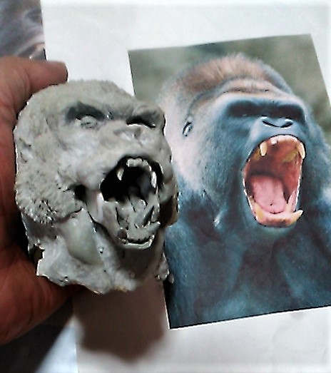 さて口開閉機構もただのフタだった「千年ゴリラ」の下顎(第一案)から前歯を前後に重ねる第2案、でも結局リアルな存在感重視のこのカタチに至るまで随分とやってきた中でようやく及第点・・・ホビーの妄想は投げ出さなければ必ず叶う!!