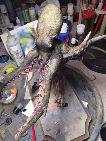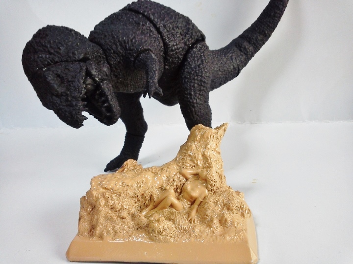 私のfbタイムラインに今日シェアされたDavidのジオラマ。 5月のUSA・WFコンテスト参加予定作品(どうやらプロも参加するコンテストっぽい?) D-REX納品も待ちきれないが、このジオラマも待ちきれない! で、シェアされたのでブログ公開も解禁かなと???(やっぱり、待ちきれなかっただけ?) 「蛸」は1984年?樹脂鋳造された当時の残骸。「蟹」は言うまでもなくDr,玄さんのTubo-Kichi。 Davidが友好によって、時間と世代と海を超えてつくりあげた唯一の「奇跡のジオラマ」 Davidに拍手!万国の怪物ファンに万歳!! My friend , David. Congratulations on the completion of "the miraculous diorama". This "octopus" was the wreckage that I cast resin in 1985. "The crab" is a design by Mr "玄" of a young amateur monster fan. David which was a pure monster fan gathered them to a diorama. Of course the purchase of these monsters is impossible. They flew over time, the generation, the sea. And they gathered to a diorama of David now. It "is the only art". "The miraculous diorama" which was made by David and our friendship. The monster fan of my blog gives this diorama applause. And this diorama is added to one of my "happy memory". Thank you, David. 2015春少数追加「いぐあな」&「ゴリラ4」ご連絡