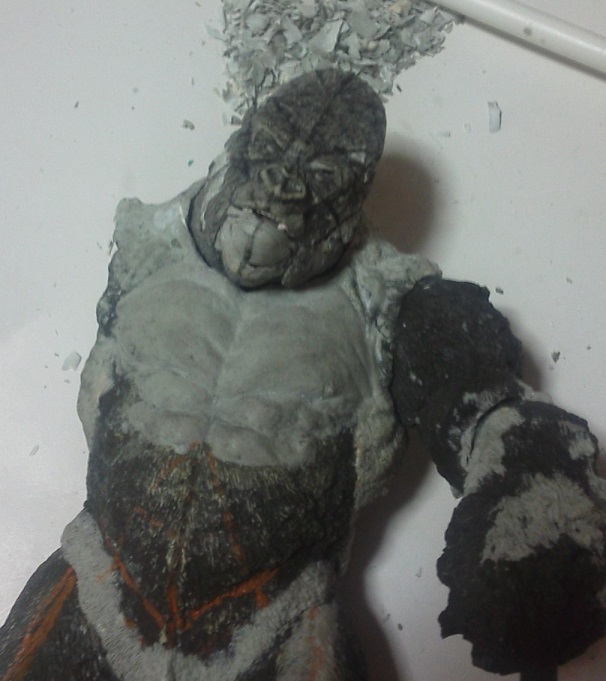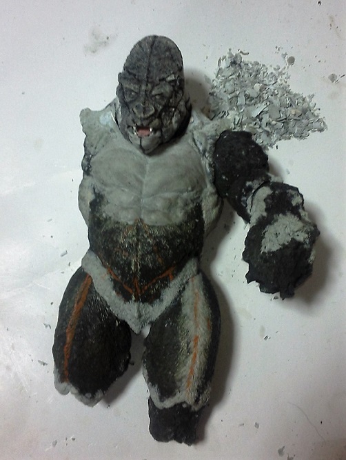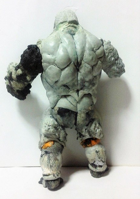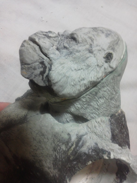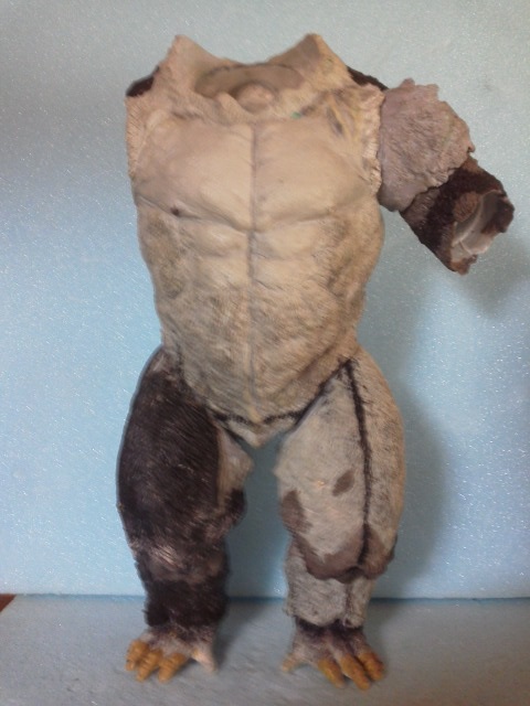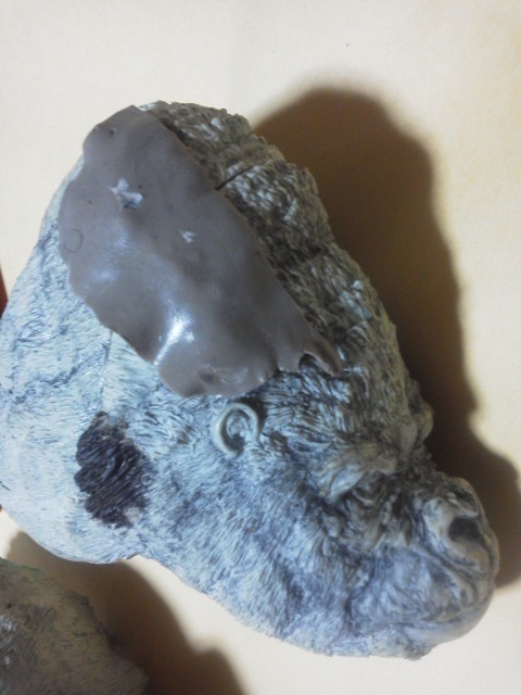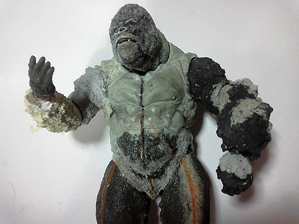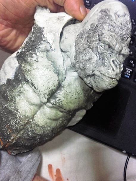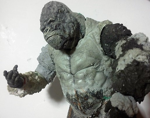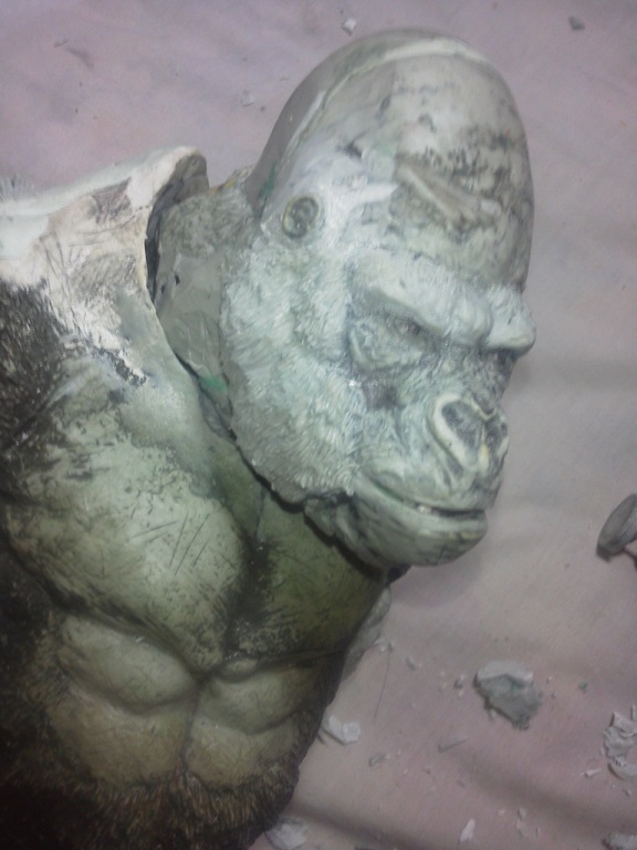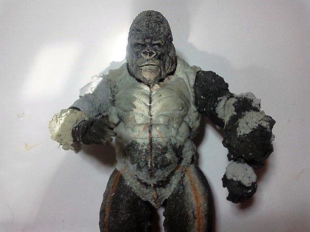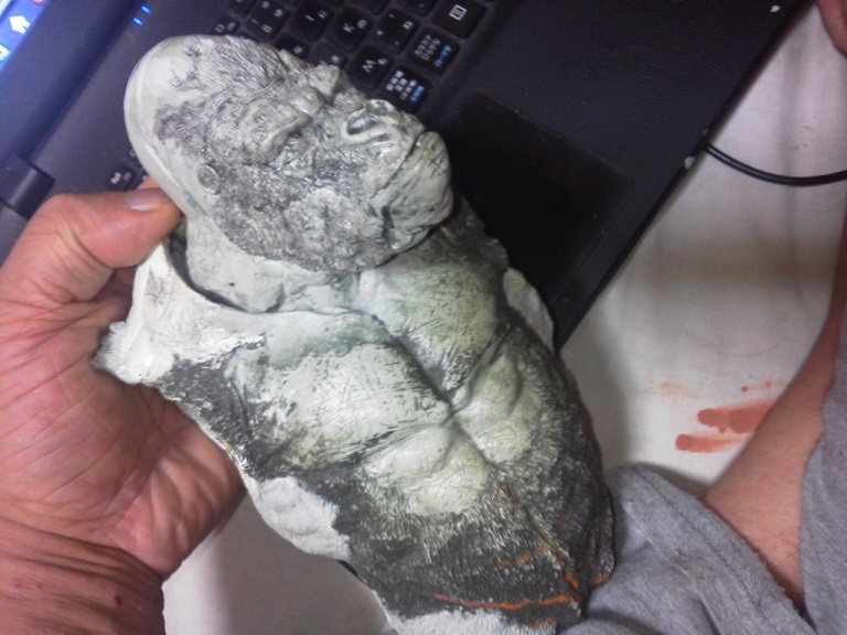 19:30追伸 「千年ゴリラ」現時点での全高32.5cm レジン→成形品を経ておよそ31cm程度の全高になるかと。 エクスプラス(原型協力 怪物屋)ギガンティックキンゴジでは流石に大きいか・・・ でもこのキンゴジ何気にかなり良い出来なんじゃないかと・・・ 2000ゴジより私はこっちが好きです!尻尾は?カタチ変えられるのかなぁ??? エクスプラスのギガンティックキンゴジ 全高48cm あみあみでまだ予約できるかも・・・ http://www.amiami.jp/top/detail/detail?scode=FIGURE-018640 販売価格 17%OFF33,800円(税込)予約※暫定 う~~ん・・・欲しいなぁ・・家宝にできても置き場所が・・・作業場所確保が最優先・・・ うぇ~~~~~んっ(←子供とおんなじ) では、しばしゴリラの体毛表現に(マジスカ無くなった・・・急ぎ注文した) 皆さんくれぐれもご心配無用ですからね♪ 8日15:30追記 暫くラストスパートにて更新おやすみ デッサンの最終確認終了。体毛表現と仕上げ作業に暫く集中しますね。 追記。おやすみ前の確認 やっぱ実際の原型はもう少し頭が小さい。首回りが仕上がれば多少かわるのかなぁ? 超人ハルクみたいな感じなんですけどね? 21:15追記 ここかぁ・・・ 骨盤がある。太腿の位置が上過ぎた・・・ 左横腹部とともに削りで形状改修。PCで拡大して確認。(また削ってらぁ!才能ねぇなぁ) 顔は頬と上口を若干修正。違いは一見班別できないだろう。 可動機構レベルの仕上げは、この彫刻レベルでの作業後に行う予定。 首は原型時ソケット部に収まらない(笑)現在首後部が欠けているのはそのため。 なにはともあれ、大きく見えていた顔はかなり改善。 まだ、前から見た際の横腹から脚に繋がるラインが気に入らない。 それでいて後頭部は少しづつ様子を見ながら大きくした。 頭蓋骨と首筋肉のしくみ、そして側面のボリュームが少しでも狂うと駄目。顔の部分は顎(エラ)を意識し首といっしょくたにならないようにした。やはり、頭蓋骨やら筋肉やらのしくみを理解しないと自然な可動も形状も容易にできないのがリアルに作る際の難しさ。 体は多少筋肉を強調し力強さを加えた。そして微妙に人間っぽい? やはり、私のイメージしている「キングコング」が「千年ゴリラ」の味付け(笑) 写真写りは相変わらず・・・・(苦笑) 次はとりあえず体毛をやってみよう。マジスカの薄皮を貼り体毛箇所による違いや強弱に留意。 尊敬する海外アーティストたちの作品を鑑賞し学んだ表現を試したい。 とにかくデカい・・・morinaoさんの「ふんばりゴジラ」と丁度良い大きさ。 もし、一般販売する際には当然量産金型(増し型)を使用するだろうから、 丁度良いスタンダードサイズにできるかも? 末期のウルトラ怪獣のガラモンなんか初版とくらべるとフタ回りほど小さくなってたっけ。 もっとも、私はやらない・・・販売させて欲しいと云う既得な御仁がおられれば 量産型用に成形品をお貸しして丸投げするだけ。 「利権」やら「金」やらが絡むともはやホビーに非ず。私にはビジネスの才は無い。(残念♪) 午前中、久しぶりにDavidとfbでチャット。 同時に東宝コングのBeto君からメッセージの嵐(笑)同時にやりとり。 Beto君曰く、名前使用は私の意図ではない。ロゴマークのメーカーさんの意向。 まぁ、何かあればDavidへのメッセージが保険になってくれるでしょう。 ※fbメッセージは投稿後の編集はできない。従って証拠として残るんです。 Beto君は私の知る限り純粋な古典怪物、東宝怪物のファン。 そして良い彫刻を完成させた彼との絶縁はこの際のやりとりによって保留・・・。 東京都の都知事さんのように「利権」やら「金」やらは簡単に人の心を呑込んでしまう。 最後は妖怪「ビビビのねずみ男」に人を変えてしまうのだ!(怖っ!) その根源にあるのは不公平な貧富の格差。 私が彼に願うことは一つ、「一流の彫刻家になることを願う、幸運を祈る」と彼にメッセージ。 これまで私から絶縁を決めたのは「ぽぉる君」と「英国怪物彫刻家君」だけ(笑) でも、私が絶縁されることはよくある(笑)(笑) 「ご自分の商売に巻き込むな、切らせてもらいます!」(直後メッセージ拒否扱いfb某御仁) 「これまでお世話になりました」早っ!?金ならぬモノの切れ目が縁の切れ目? その前に御免なさいは???ブコっ?おしまいなのね???・・・。(笑) コミュニケーション能力って・・・やっぱ大切かもです。 追記 いつのまにかカウンターアクセス数が300000超えてる・・・ 皆さんに只感謝。 でも数を見てもピンとこない。お金の勘定で私が理解できるのは¥300程度(笑) ¥300000・・・0の数が増えれば増えるほど目がチカチカするだけ・・・ 財布の中身?¥3000あれば日常たいていはコトがすむ。 それ以上¥30000?持ち歩くコト無い。 ¥300000?私の財布(小銭入れ)には入らない。 これを越えると¥3000000も¥30000000000も変わらない・・・ 0の数、数えられないしっ!!(爆笑) PR 15;00追記 摺合せ作業は今日で完了予定。