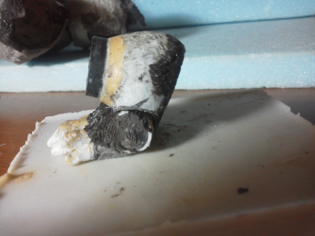 現在、大改修肉付け完了、あとは体毛表現そこそこやったら日曜日には公開できるでしょう。 ようやく思い描いていたゴリラに近づいてきています! 18日18:30追記「ありゃりゃ」の締めは「ありゃりゃ」 「千年ゴリラ」が「ありゃりゃ」ではない。 PCつけたまま昼飯たべて戻ると・・・ 勝手にウィンドゥズがアップロード!?「ありゃりゃ???」 よぉわからん上にブログ画面がなんか変?壁紙が無くなり白背景の まるでスマホ画面???最初だけでしたけど???なんでしょねぇ??? ネットのお気に入りがどっか消えちゃうし、実に使いにくい。 息子に聞くと、同様に先日ウィンドゥズ10?にアップロードされたとか。 ったくぅ・・・ちょくちょく基本ソフト変えられるとなぁ・・・ なんだか腹たつなぁ・・・私のようなデジタル苦手爺には迷惑な話だ。 オマエはウィンドゥズ10?ウィルスかっ!!!!! まぁ、画像編集機能がちょい良くなって下手携帯画像が修正できるようになったでので 許そう・・・ほら、先日の画像ちょっとだけマシに? 本日は胸のボリュームUPと首取付け部微調整。 17日21:00追記 顔と頭部の毛 1回のマジスカ盛り付け&モールディングは1㎠がやっとこさ。 横と前の体毛のラインあわせも簡単ではない・・・。 PCで拡大してもマジスカのモールディングが見えずらい。再び筆ペンで陰部にチョンチョン。 筆で軽く撫でてやる。かろうじて確認。 顔が大きくならないよう気を付けながら少しずつ進行。 今日は首の取付け位置まで改修した。 16日23:40追記 首から上の改修 「千年ゴリラ」の改修は順調。 顔は微妙なデッサンの狂いを面取りから屋い直した。 上下の口元もかなり削った。 おでこから頭頂部、そして後頭部から首に繋がるラインさらに首パーツのラインと胴体の首取り付け部のラインはかなり改善(^^♪ しばし可動機構を考慮しながら彫刻的作業に集中して楽しむ♪ 今日は昼にカラオケ行っちゃったので仕上げには至らず・・・改修箇所の見直し程度。 ここは先を急がずじっくりとやっていきます。 腕や他の部位も何気に気が付いた箇所を直しています。 やはり、仮組みした際にまだまだ美しく各部ラインがつながっておらず「デク人形」。 ソフビはあくまでも美しいラインじゃないと駄目だと思う。 13日19:40追記 「千年ゴリラ」ようやく頭部デカく見える根本的原因が判明。 只今改修中。さらにマジスカ追加注文(今回はナチュアル確保) 背中の筋肉強調。喉と頭部の筋肉が繋がりました。可動も良好。 デク人形から可動彫刻ゴリラに仕上げていく予定。 現状見たら卒倒する方もおられるかもしれないので、ある程度つくりあげるまで画像公開は自粛(笑) 月曜にはUPできるかな?「今回のタイトル、ありゃりゃ・・」はそんな予感あればこそ(笑) 11日18:10 今日の改修 目の上をちょい盛り、鼻1mm程度下にずらしました(^^♪ 眉間も強調させてから様子見ながら仕上げていく予定。 後頭部は頭蓋骨にあわせ、首ラインも修正。 ※油土で盛り量と形状確認。カン着なんとか収納できるギリかな? 顔が大きく見えた筈です。首も顔になっていたんですからねぇ・・・ 顔範囲(耳と顎ライン)つまりは側面を骨格に照らして見直し。 頭蓋骨の資料がおおいに参考になったなぁ。 頭ゴロンゴロンしないように接合ラインも改修中。 エポパテ硬化までこんな画像見て遊んでいます♪ 10日18:00追記 今日は夢中でカービング 結構削りました。 傾いていたセンターラインは右脚取り付け部エポパテ改修。 改修ラインが見えてきたので明日は外でハンドグラインダー。 明日天気になぁれ(^^♪ 9日10:25追記 整理品放出第2弾のお知らせ。 本日21:00頃画像公開、これまでオリジナルソフビ共有者限定でお問合せ受付予定。 特リボタイプフィギュア、ダンボール2箱分。(一応、怪獣はあらかた全種あるようです。) 未開封品→購入当時の希望小売価格。(初期の特リボはお安かったんですよん!) 開封品(ほぼ確認しただけ)→購入当時の希望小売価格以下+送料。 ヤフオク同様、転売でお小遣い稼ぎもOK!リボ球ジョイントは部品取りにも重宝(^^♪ 興味ある方は是非玩楽多整理にご協力ください♪ 9日17:30追記 顔と云うより・・・ 首ですね。胴体はやはりボリューム不足。早速、改修。 19:40追記 原型とことんチェック!(←遊んでいるだけ?) これも請負の納品とかあるとできない(多分そんな余裕ないしっ) 「あれぇ~~???」ポリポリ・・・ 流石に原型はモロい・・・迂闊に遊びすぎると損壊しちゃうのでこのあたりで我慢。 ソフビになったら遠慮なくグリグリしちゃいます! 改修箇所も見えたので、もう少しやってみますかね♪ ・右足取り付け部、股座の調整→胴体の垂直線の傾き修正。 ・胴体の側面と背面のボリュームUP。 ・首・肩ラインのボリュームUP ・頭頂部毛の逆立ち部隙間削りと形状。 ・腹筋部 「千年ゴリラ」制作奮闘記「ありゃりゃ・・」 「ありゃりゃ・・・」適当に余りスプレー吹いたら・・・こりゃ酷い(苦笑) 流石に陸自カラーをゴリラに吹いては無理