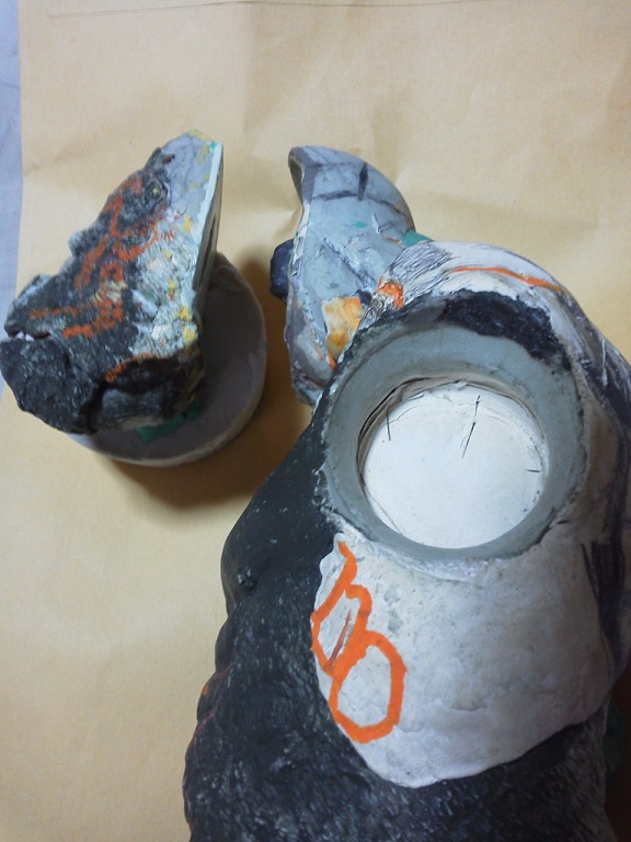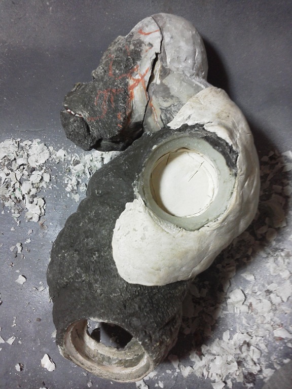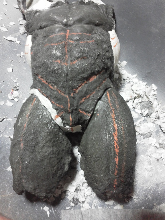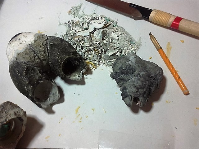 顔は大きい小さいとかではなく顔の部分を明確に首と分けることで解決。 それでも側面や後頭部かなり削る(汗)下顎も削った。 首の繋がりに気を付けながらやはり削り、顔のエラ部分を明確にした。 画像の削りゴミは、ほとんど首の胴体部ソケット内側。 最終的には首との隙間はほとんどなくなる予定。そ そして、それを可能にする㊙アイデアを今回の新たな試みとして盛り込んでいる。 ありゃっ?左耳削り取っちゃったみたい???つくればいいや(^^♪ 首回り、喉周辺、口が大きく開くよう改修。 あとは「楽しい彫塑=ほぼ通常の原型制作とおんなじ作業を楽しむだけ」 マジ、ひたすら楽しい!こんな夢中になれる時間に恵まれていることに感謝! 「千年ゴリラ」改修中。 白い部分が改修箇所。 マジスカ硬化待ち。明日仮組予定。 やはり写真写りがイマイチでカックンちょ・・・ 明日に続く 24.9:45追記 西日本26日まで注視継続中。阪神地区周辺部 茨木・福島はいつもの如し。現在災害級のデータ確認できず。 23.0:30追記 西日本M3~4 ①四国、伊予灘、玄界灘周辺~26日まで ②阪神地域 ~25日まで 19日0:00追記「千年ゴリラ」大変身は21日公開予定