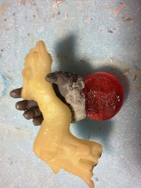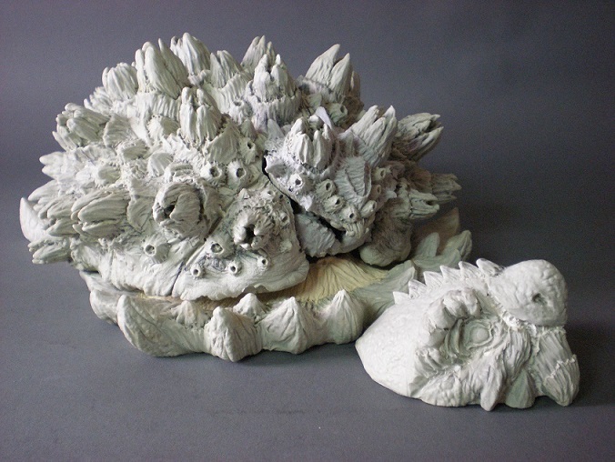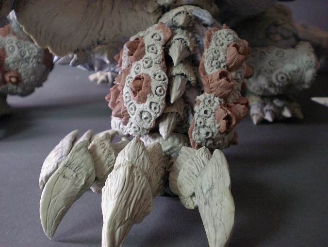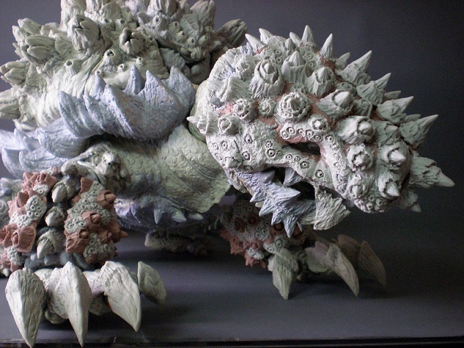 中央の頭の顎のトゲや首のヒレが欠けたりと大変でした。