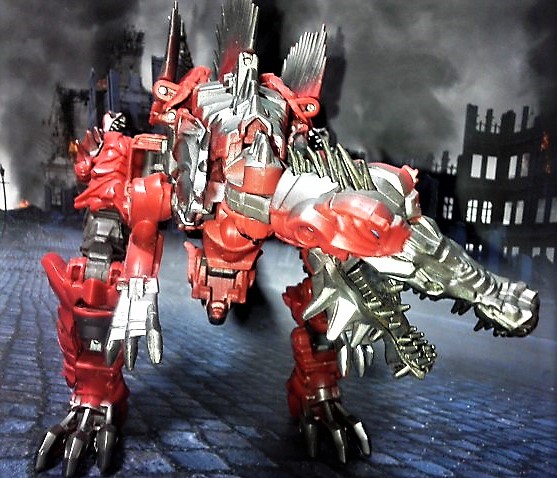 スピノ形態はやはりゴリラ4と並べると一回り大きくないと厳しいみたい。ロボ形態は全高はあるけど頭ちいさいからやはり役不足に見えちゃう。尻尾腕だけは有効的にみえるものの掴まれて振り回されちゃいそう・・・まぁ普通ああTFと絡ませようなんて誰もかんがえないし・・・海洋堂のソフビ問ボックスのT-REXは全長270mm・・・微妙でしょ?頭大きいから良い感じの画像は撮れそうなんですけどね。D-REXみたいに足上げポーズデキるみたいだから少し期待してるんですけど♪