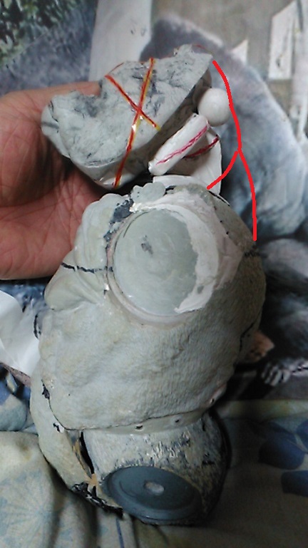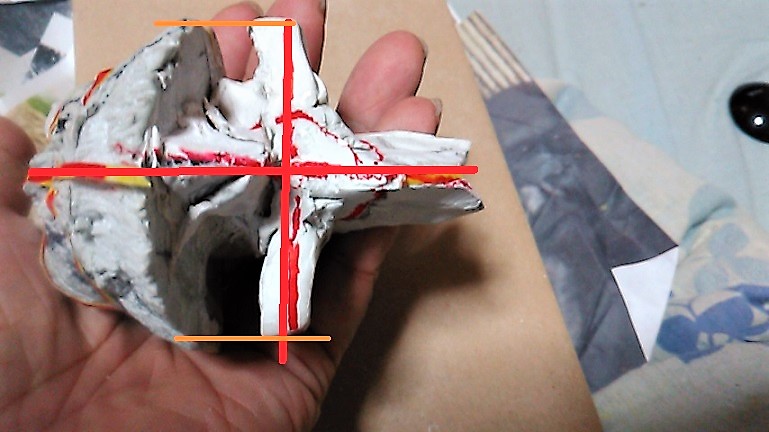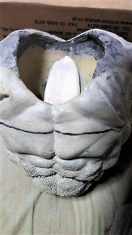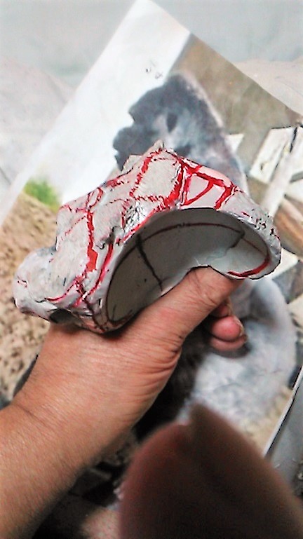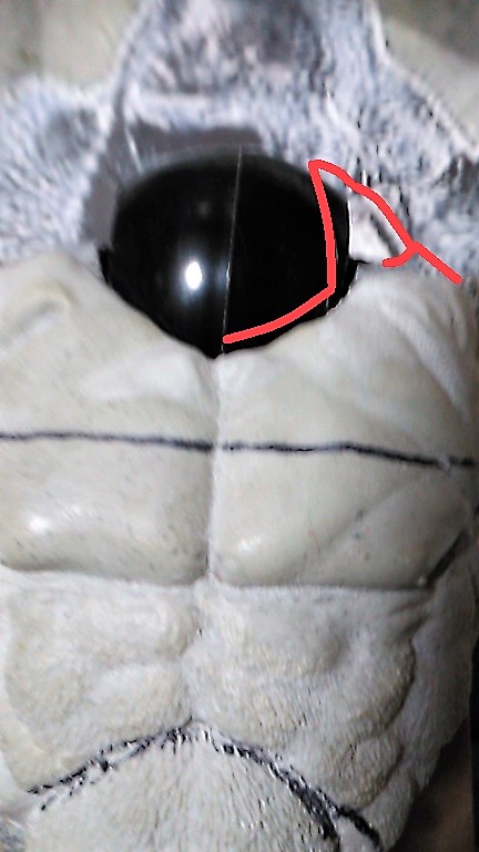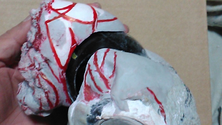 この後、肘と同様にハサミの付け根の隙間を生地で覆う予定です。