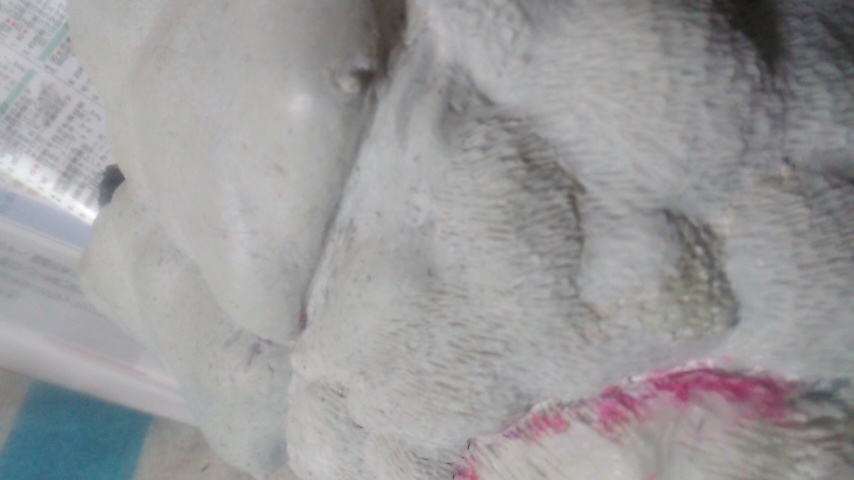 ※改修途中の頭部と改修完了した胴体。頭部と胴体部のセンターラインが1mmほど歪んでて