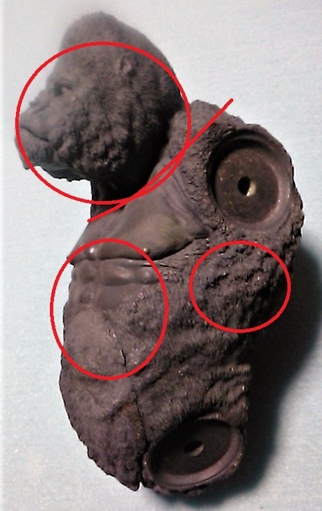 全然気に入らない頭部、分割変更、顔完全整形。解剖学的視点からやり直しています。胴体も胸上から切断し首球のソケット部変更。これによりつなぎ目めだたずにマルチ可動が可能に、特に首との繋がり、背中から後頭部のライン、頭部の形状がよりリアルに。